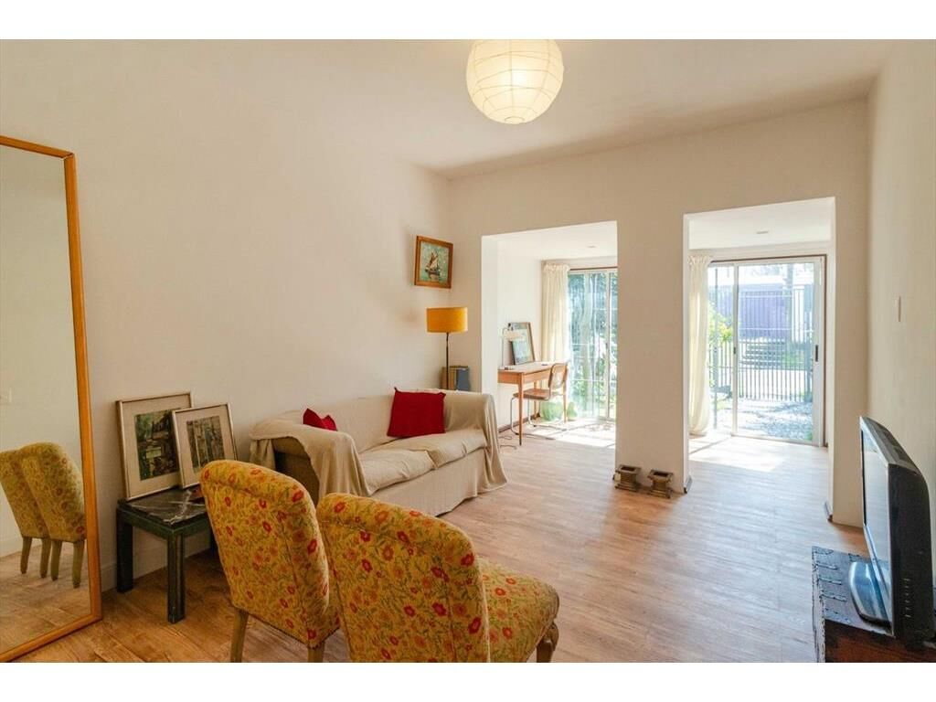 Venta de hermoso apartamento planta baja tipo casa en una ubicación privilegiada en Buceo a 3 cuadras de la calle Rivera. Esta hermosa propiedad en una sola planta con jardin al frente que da a la calle (podria servir para guardar 1 auto) y con entrada totalmente independiente. Es una propiedad moderna reciclada con muy buen gusto. Al ingresar tenemos una recepcion con escritorio y 1 dormitorio al frente con entrada independiente. Luego tenemos el living y la cocina semi integrada con barra seguida del comedor. Bano con ducha y conexion al lavarropa. Amplio dormitorio con pisos de madera. Todos los ambientes tienen luz natural, rejas en todas las aberturas. NO ACEPTA PRESTAMO BANCARIO SIN GASTOS COMUNES