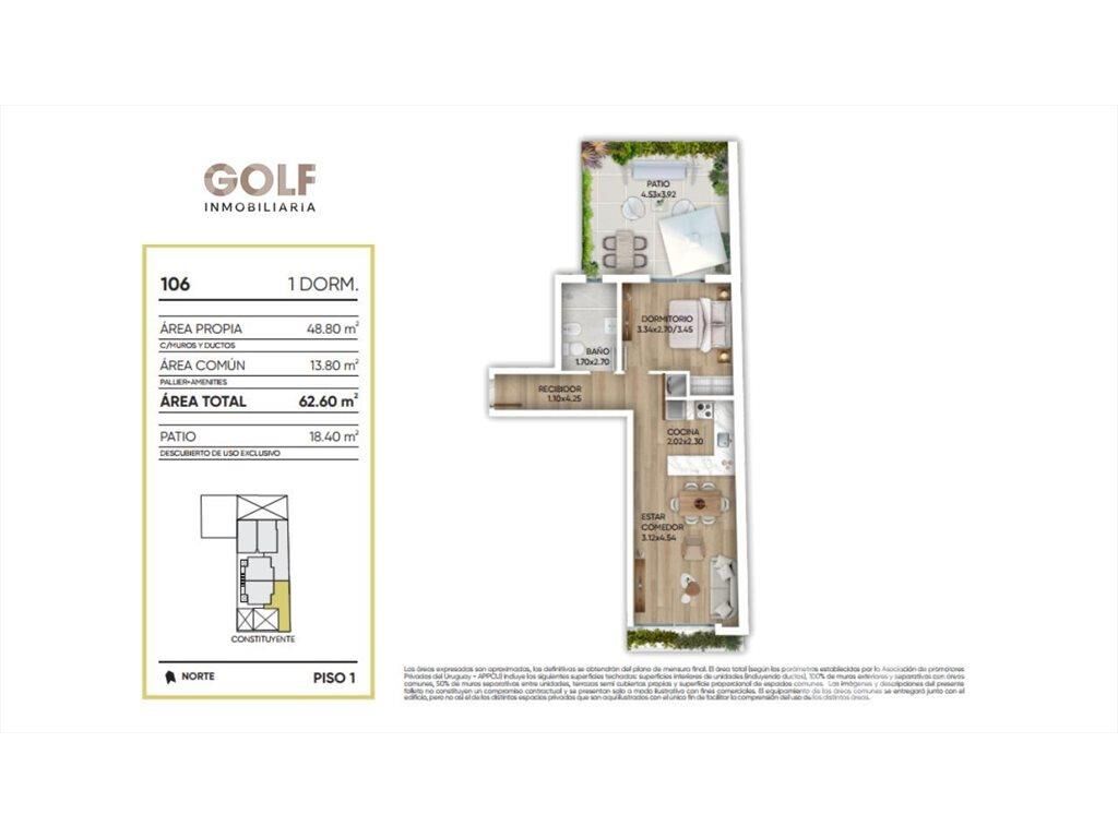 VENTA DE APARTAMENTO DE 1 DORMITORIO CON PATIO EN CORDÓN