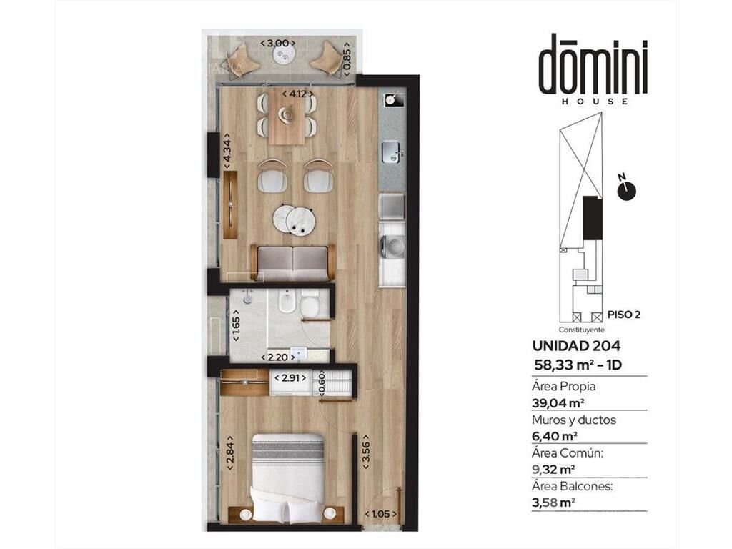 VENTA DE APARTAMENTO 1 DORMITORIOS EN CORDÓN