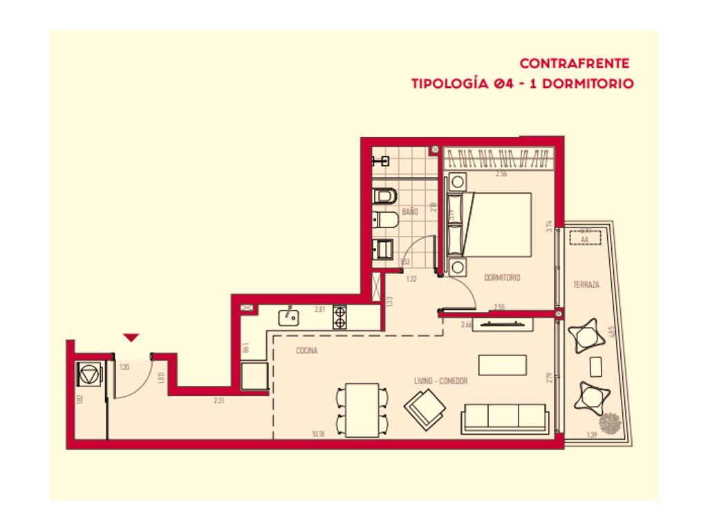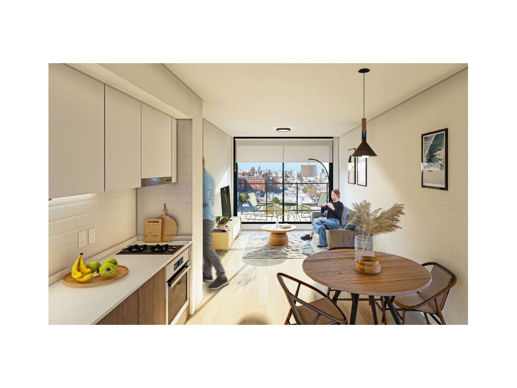 Apartamento en cuarto piso al frente con orientación Oeste. Amplio living comedor, cocina integrada, dormitorio de buenas dimensiones con salida a terraza. Baño completo.