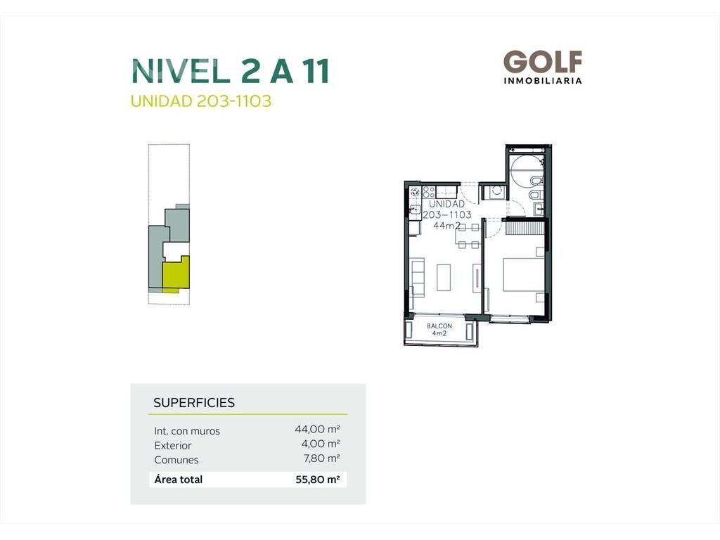 VENTA DE APARTAMENTO DE 1 DORMITORIO CON TERRAZA EN LA BLANQUEADA. - Dormitorio con placard - Cocina integrada con muebles bajo mesada y aéreos, mesada en granito - Living comedor con ventana de aluminio y cortina de enrollar - Baño completo - Mueble para lavarropas y calefón independiente -Terraza Previsión de eléctrica y desagüe para aire acondicionado. Ambientes integrados con excelente orientación y optimo asolamiento. Todas las unidades cuentan con terrazas o patios exclusivos. Los amenities en el nivel de azotea están conformados por un parrillero cerrado común equipado con mobiliario y servicios, y dos amplias terrazas con excelentes vistas a la ciudad. SITE PROPIOS se ubica a pocos metros de Avenida Italia, en un área urbana en constante crecimiento, excelente conexión y transporte. Zona residencial con muchos servicios e infraestructura, centros de salud y educativos, y áreas verdes de esparcimiento. El edificio se proyecta en 13 pisos con 32 unidades. 21 unidades de 1 Dormitorio y 11 unidades de 2 dormitorios. 16 Cocheras distribuidas en Planta Baja y Subsuelo. Cocheras desde USD 15.000 Gastos de ocupación 4% Comisión inmobiliaria 3% + IVA FORMA DE PAGO: 35% compromiso 55% en cuotas según mes de obra 10% contra ocupación Este proyecto está incluido en la ley de beneficios tributarios para vivienda promovida según Ley 18.795 - Exento de IVA en el Precio de Compra - Exoneración de IRPF/IRAE durante 10 años - Exoneración de Impuesto al Patrimonio durante 10 años - Exoneración de ITP aplicable en la 1º compra INMOBILIARIA GOLF Afiliados a Cámara Inmobiliaria Uruguaya