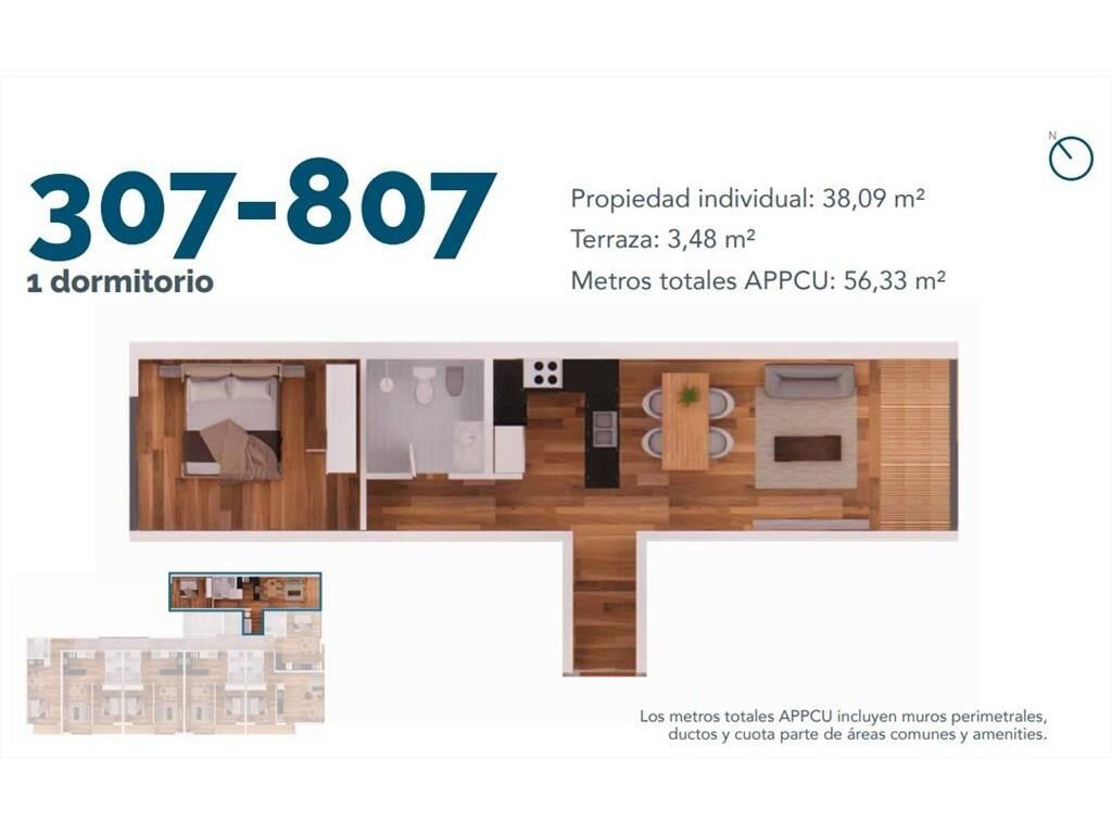 ¡Venta de apartamento de 1 dormitorio en Torre Munich, Cordón!