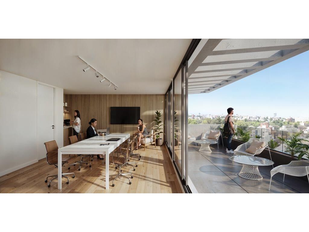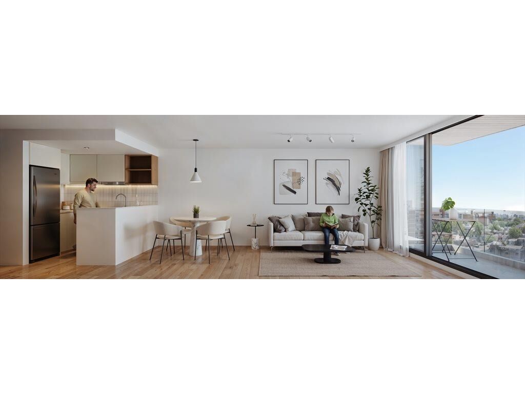 La unidad se encuentra en el segundo piso al frente con orientación Este. Cuenta con living comedor con cocina integrada mediante barra y balcón al frente.