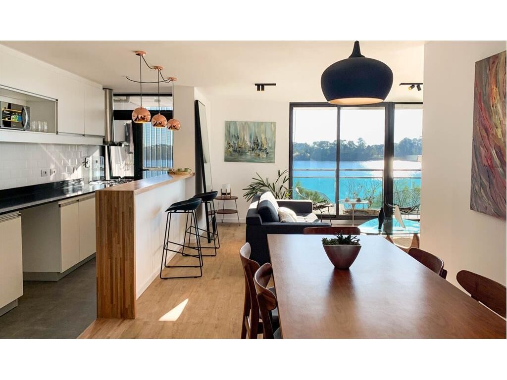 Sexto piso, living comedor al frente con vista al lago. Cocina definida con terraza lavadero.