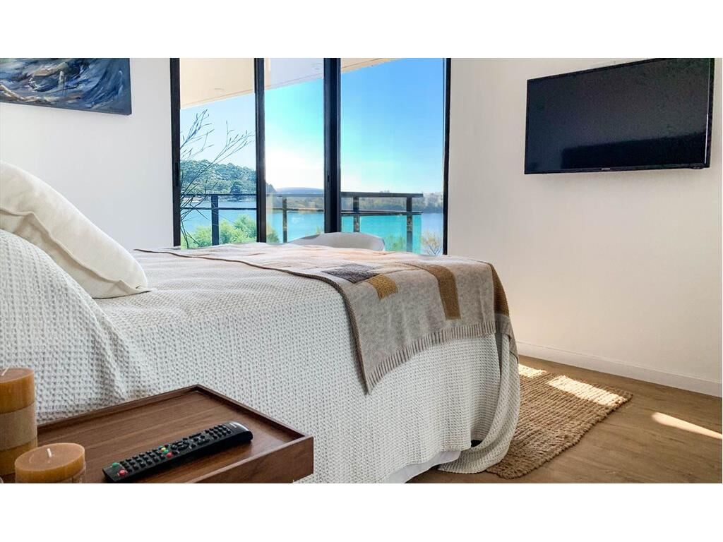 Dormitorio principal al frente con salida a amplia terraza con vista al lago.