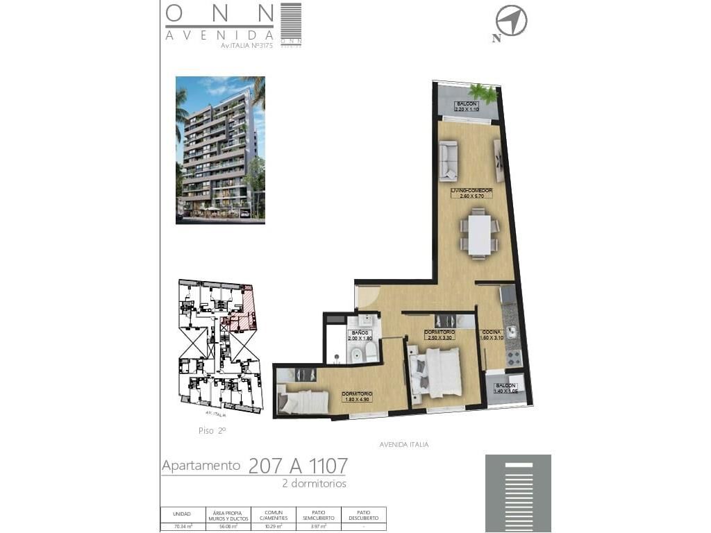 Venta de apartamento de 2 dormitorios en ONN Avenida, ubicado en una de las avenidas mas destacadas de la ciudad - Av. Italia y Luis A. de Herrera, La Blanqueada. Rodeada de servicios y conectividad a toda la ciudad y al este.