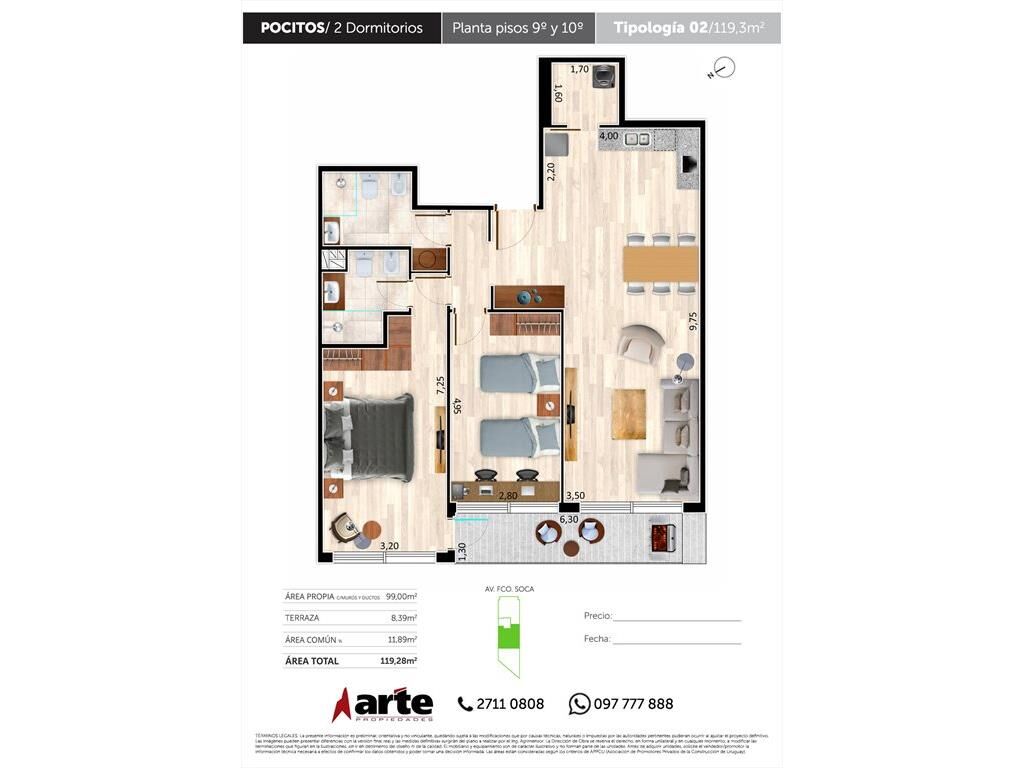Venta de Apartamento de 2 dormitorios en pleno Pocitos