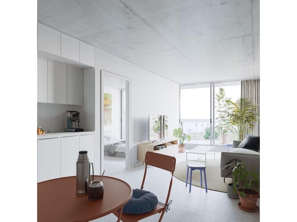 Piso 3 al frente, living comedor con cocina integrada. Balcón al frente con salida desde el living y el dormitorio princiapl.
