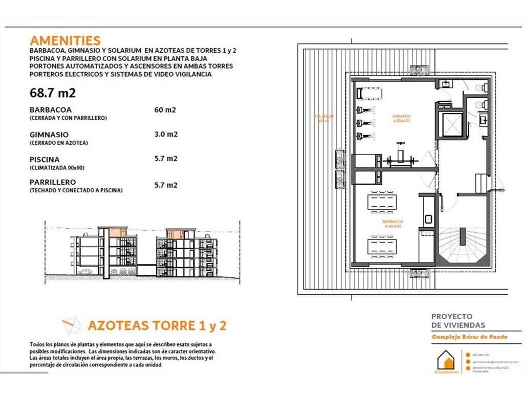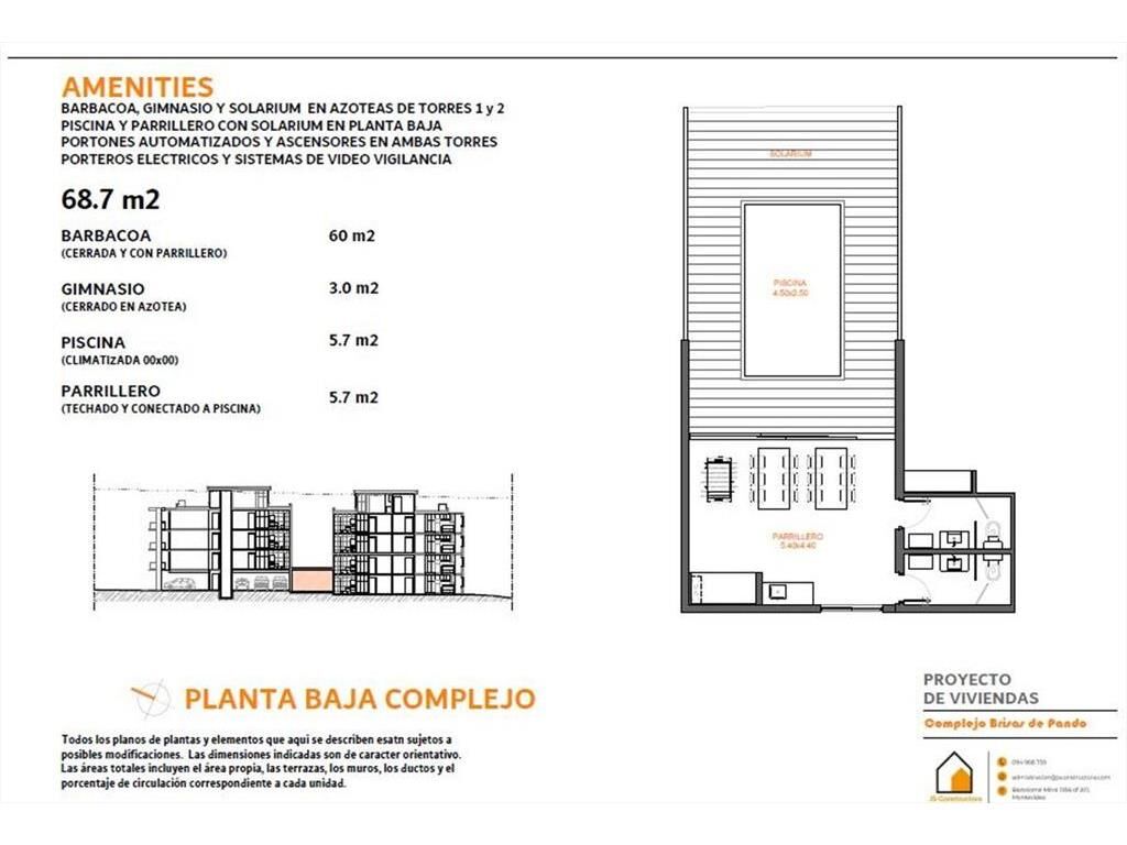 Ubicado en un punto tranquilo de la ciudad con fácil acceso y egreso tanto hacía Montevideo, como hacía el este. El complejo Brisas de Pando comienza sus obras en el año 2026, tiene fecha prevista de entrega en diciembre de 2027, son dos torres de edificios, en total 28 apartamentos de uno y dos dormitorios, ascensor en cada torre, cocheras, piscina, parrillero en planta baja, gimnasio y barbacoas con solarium en azoteas. Predio cerrado con circuito de videovigilancia.