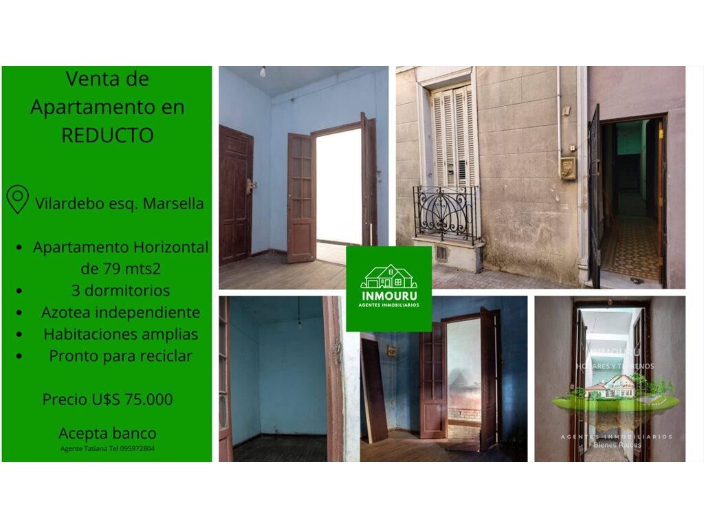 Apartamento horizontal con entrada directa. Equipado con 3 dormitorios grandes, cocina, baño y azotea independiente.
