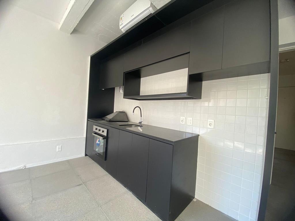 Cocina integrada con placares, anafe , horno eléctrico, campana extractora y aire acondicionado.