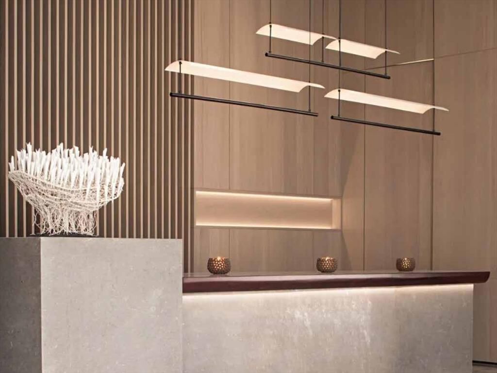 El edificio cuenta con recepción moderna, patio interior con vegetación, salón de usos múltiples (SUM), piscina y vestuario, gimnasio, sauna seco y bicicletero.