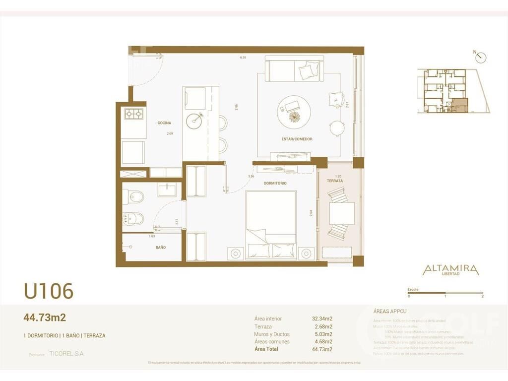 Venta apartamento 1 dormitorio con terraza