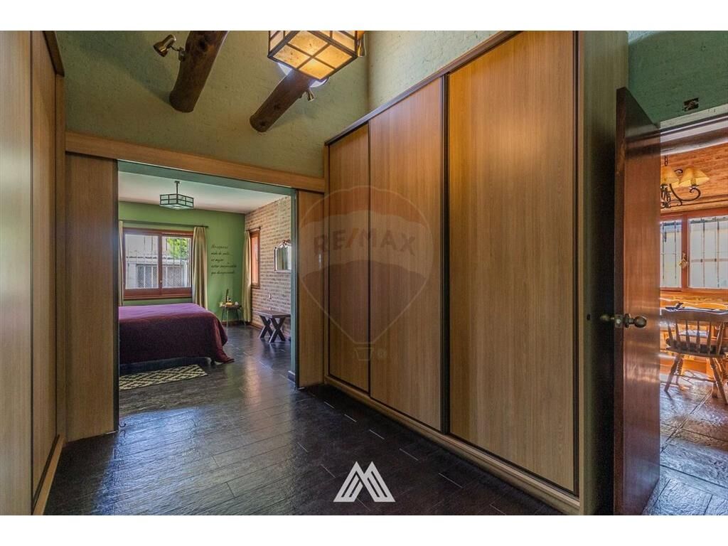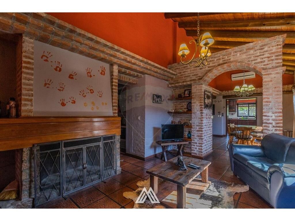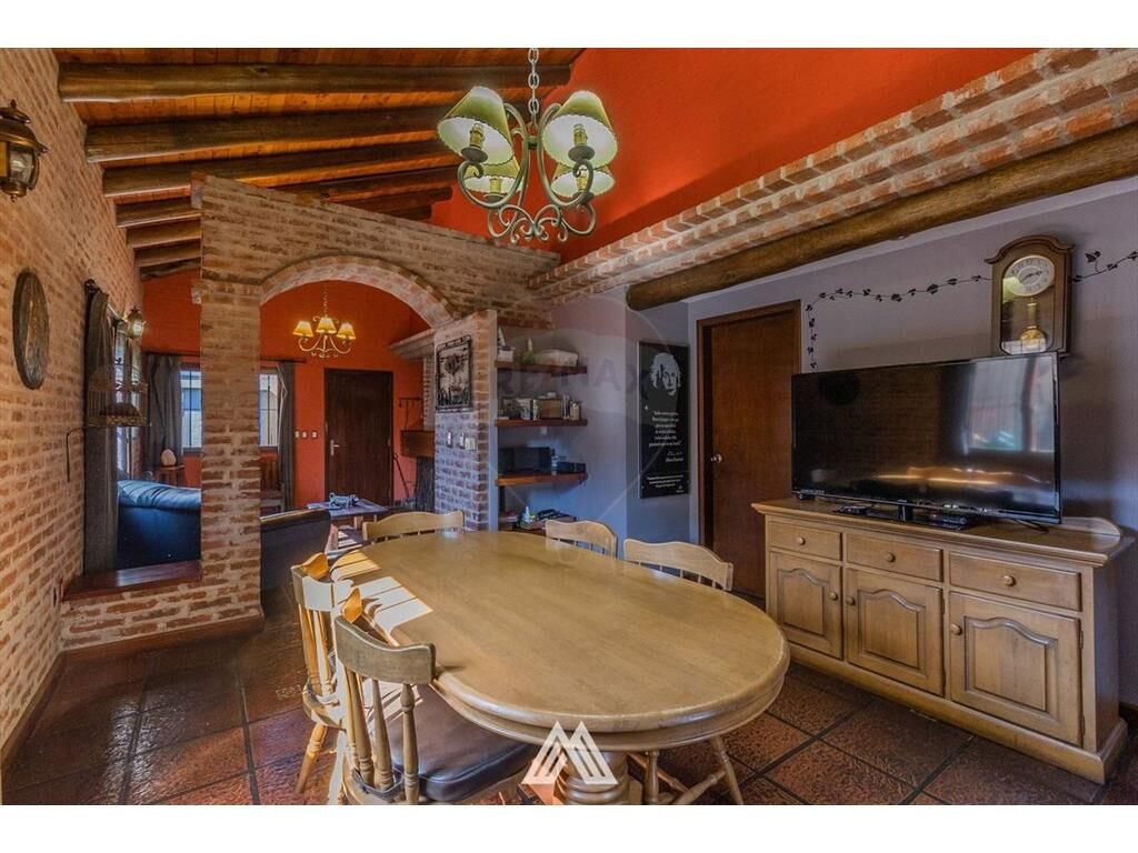 Casa principal posee living-comedor con estufa a leña, cocina con placares aéreos y bajo mesada, doble pileta, horno empotrado y anafe con campana extractora, puerta de madera con reja. Dos dormitorios, uno de ellos con doble ventana y baño completo. El dormitorio principal se destaca ya que cuenta con baño en suite y gran vestidor, brindando privacidad y confort, ventana al fondo con vista a la piscina.