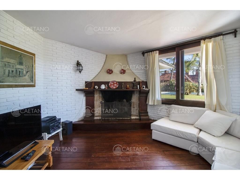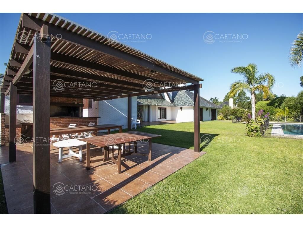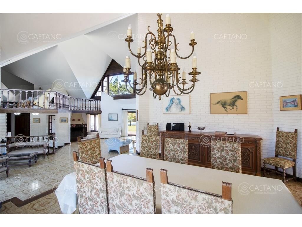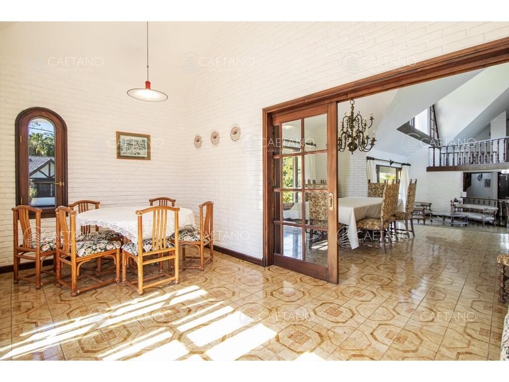 Planta baja hall, living, hogar con estufa a leña, comedor, comedor diario, cocina, dependencia de servicio con baño. Salida al parrillero techado y gran parque con piscina. Lavadero.