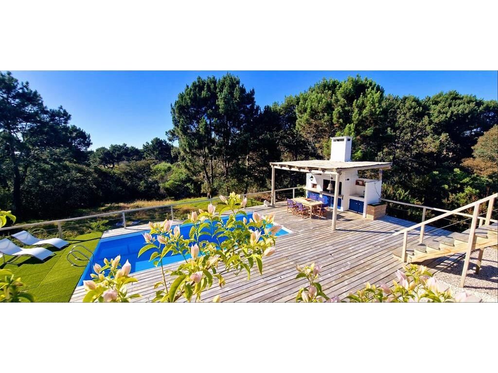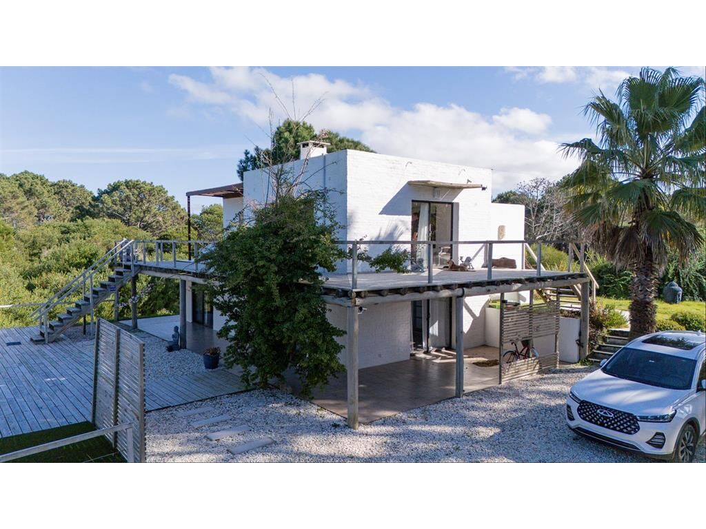 Faro de Luz is a stunning three-level home nestled in the peaceful woods of Faro de José Ignacio. Set on a private 1,250 m² lot, it features a two-level terrace with a covered BBQ area, a brick pizza oven, and a pool—perfect for outdoor living.