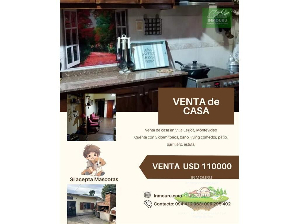 Casa en venta en Lezica ? Montevideo (Gioia esquina Santa María)Encantadora propiedad ubicada en una zona tranquila y residencial. Ideal para familias que buscan comodidad y espacio.Características principales:3 dormitorios ampliosCocina funcionalLiving comedor luminosoParrillero ideal para reunionesEstufa a leña para disfrutar en inviernoJardín al frente y amplio fondoPrecio: USD 110.000Tiene títulos (No acepta banco)Consulte con nuestros asesores para coordinar una visita o recibir más información.