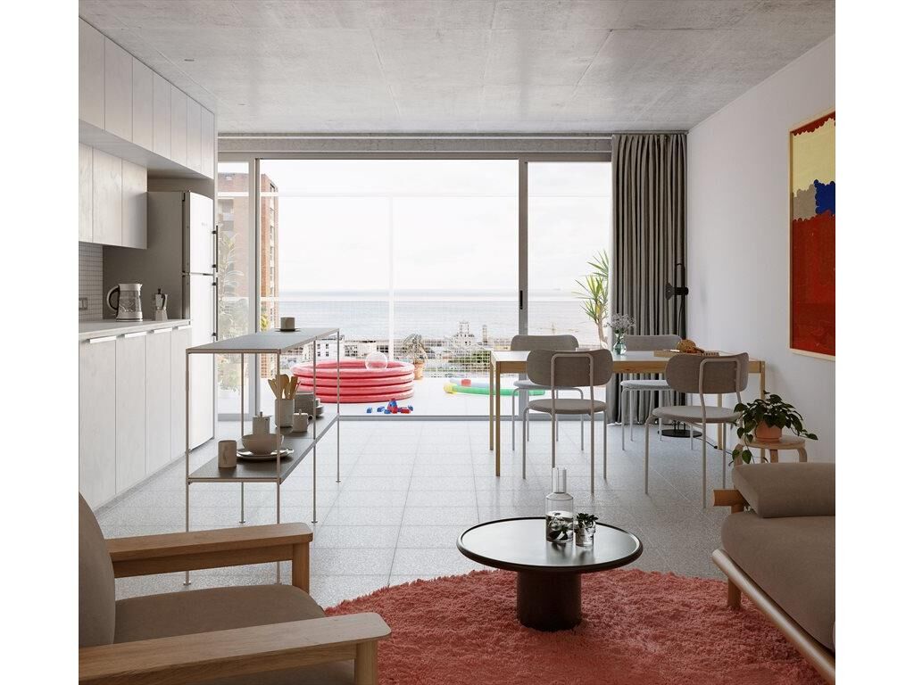 Living comedor con salida a gran terraza. Cocina integrada con baño social. Espacio de escritorio o posible 4to dormitorio.