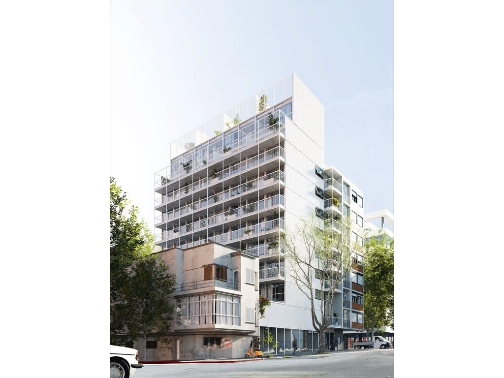 El edificio realiza un giro de 90 grados orientando su fachada principal hacia el Rio de la Plata sin desatender la continuidad con el entorno urbano inmediato. A través de un sistema circulatorio de pasarelas que ventilan a un patio interior se organizan 39 unidades.