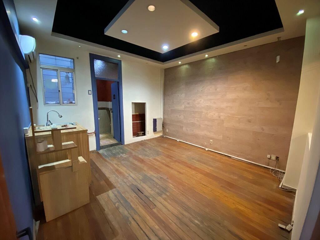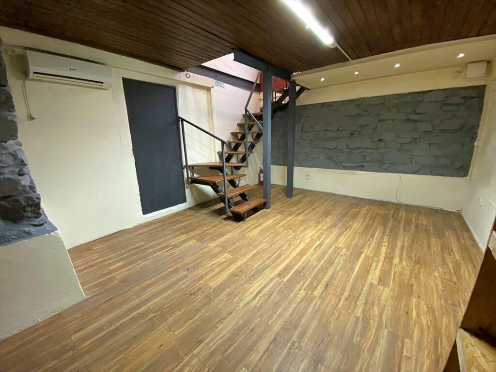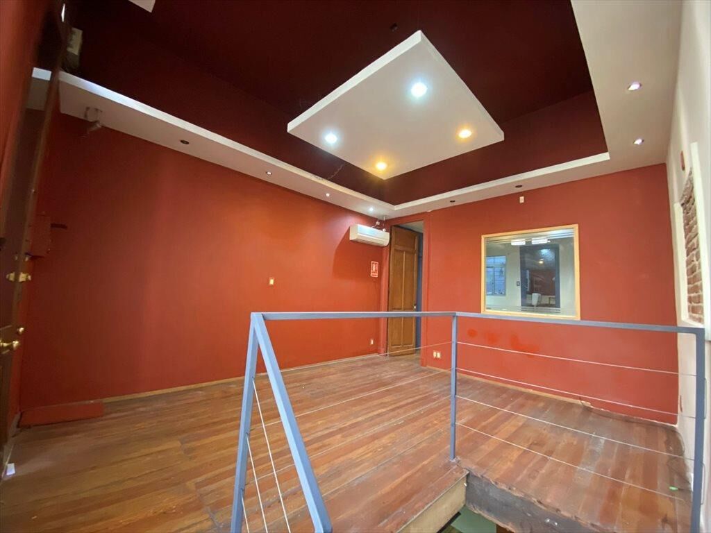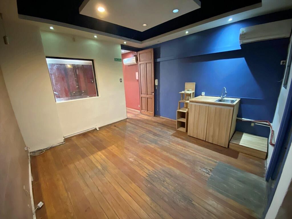 La propiedad ofrece un espacio principal con pisos de madera, aire acondicionado y una disposición versátil ideal para showroom, estudio, tienda, o emprendimiento. Separada por una estructura funcional, se encuentra la cocina también con aire acondicionado y un baño.