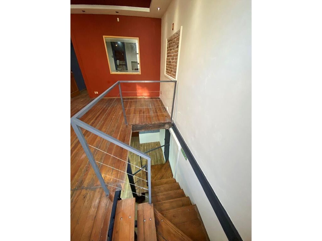 La escalera de diseño industrial en hierro y madera conecta con el sótano bien aprovechado que suma tres ambientes adicionales. Estas habitaciones pueden destinarse a distintos fines según las necesidades del rubro.