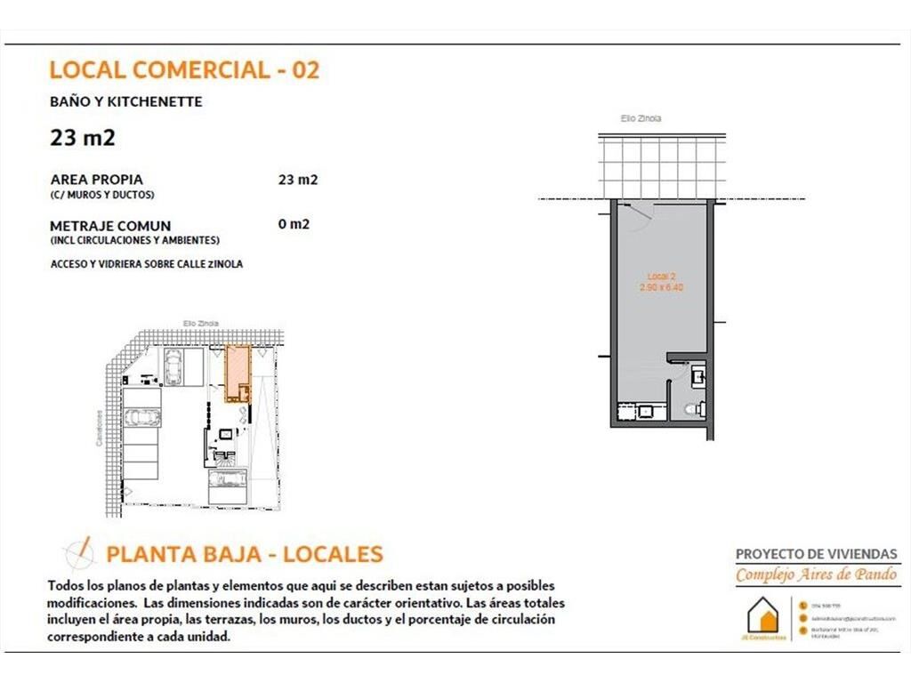 Este local comercial se ubica sobre la calle Elio Zinola, entre la entrada principal del edificio y la rampa hacia el subsuelo, cuenta con 23m² propios de local con vidriera al frente, baño y kitchenette.