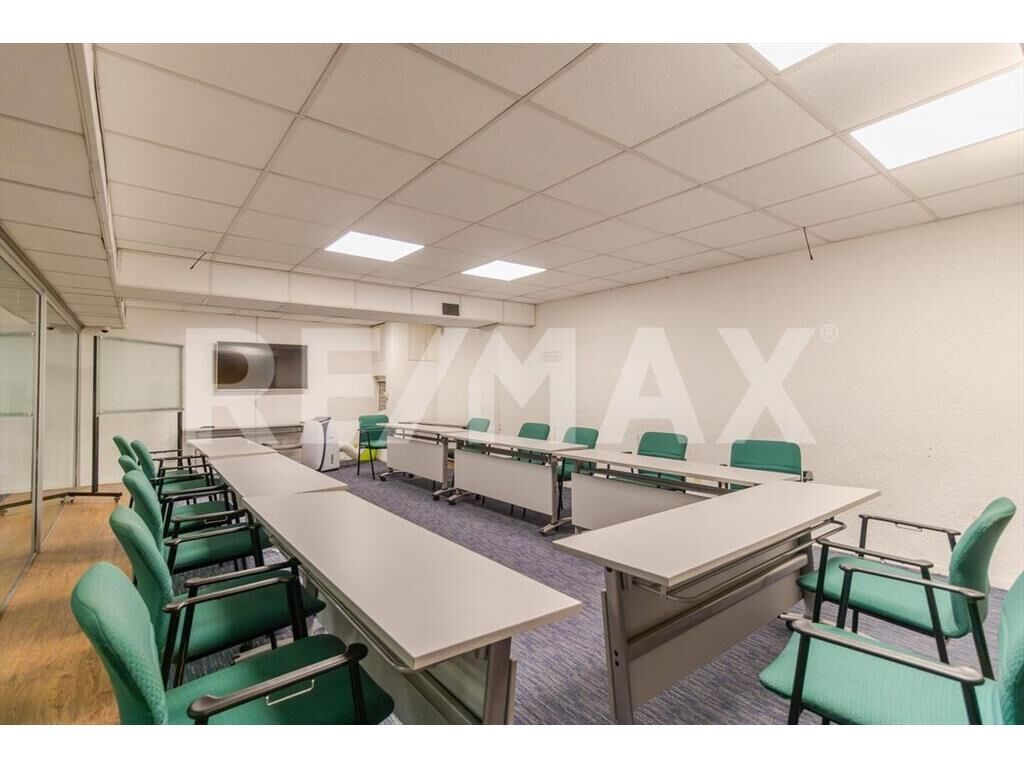 Pisos 1 y 2(228m2 primer piso y 213m2 segundo piso): Espacios versátiles con divisiones modulares y baños en cada piso. El primer piso incluye un salón de clases y oficinas privadas, mientras que en el segundo hay múltiples oficinas y salas de reuniones.