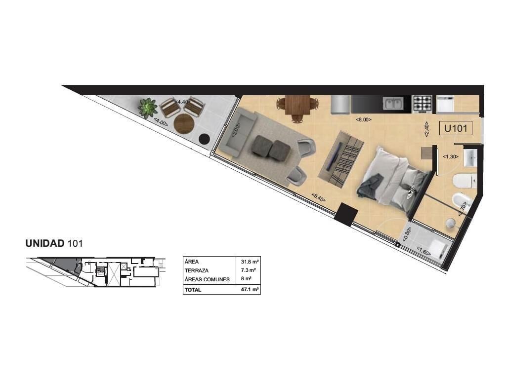 El edificio contará con 19 apartamentos, 1 unidad loft y 18 de 1 dormitorio.
