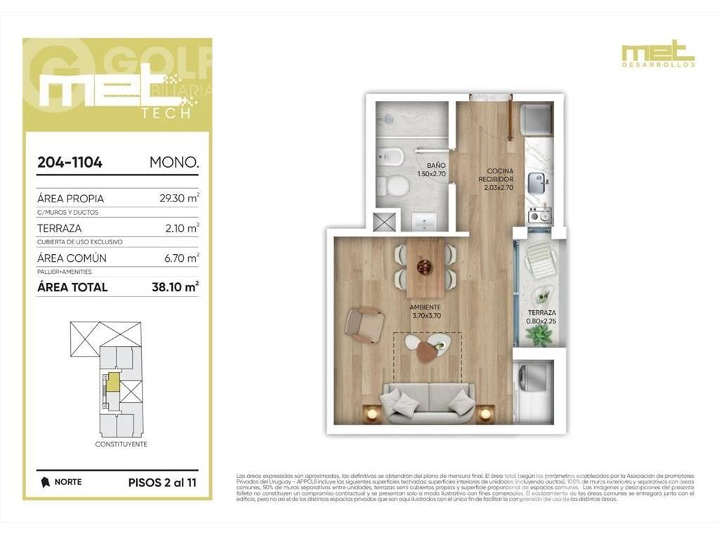 Venta de Monoambiente en Cordón – Moderno, funcional y con terraza Excelente oportunidad para vivir o invertir en una de las zonas con mayor crecimiento de Montevideo. Este monoambiente cuenta con: Cocina semi integrada Baño completo Terraza privada Ubicado en un edificio de 13 pisos con 93 apartamentos, diseñado con arquitectura contemporánea,  equipamiento exclusivo y espacios que se adaptan a tu estilo de vida.  Los amenities han sido pensados como una extensión de tu hogar, brindando confort y funcionalidad en cada rincón. Tecnología y confort en cada detalle: Acceso al edificio mediante reconocimiento facial Cargadores para autos eléctricos Domótica integrada en todas las unidades WiFi en áreas comunes Control de acceso digital en cada apartamento Proyecto amparado por la Ley de Vivienda Promovida (N.º 18.795), con importantes beneficios fiscales para los compradores. Gastos de ocupación: 4% Comisión inmobiliaria: 3% + IVA INMOBILIARIA GOLF Afiliados a Cámara Inmobiliaria Uruguaya