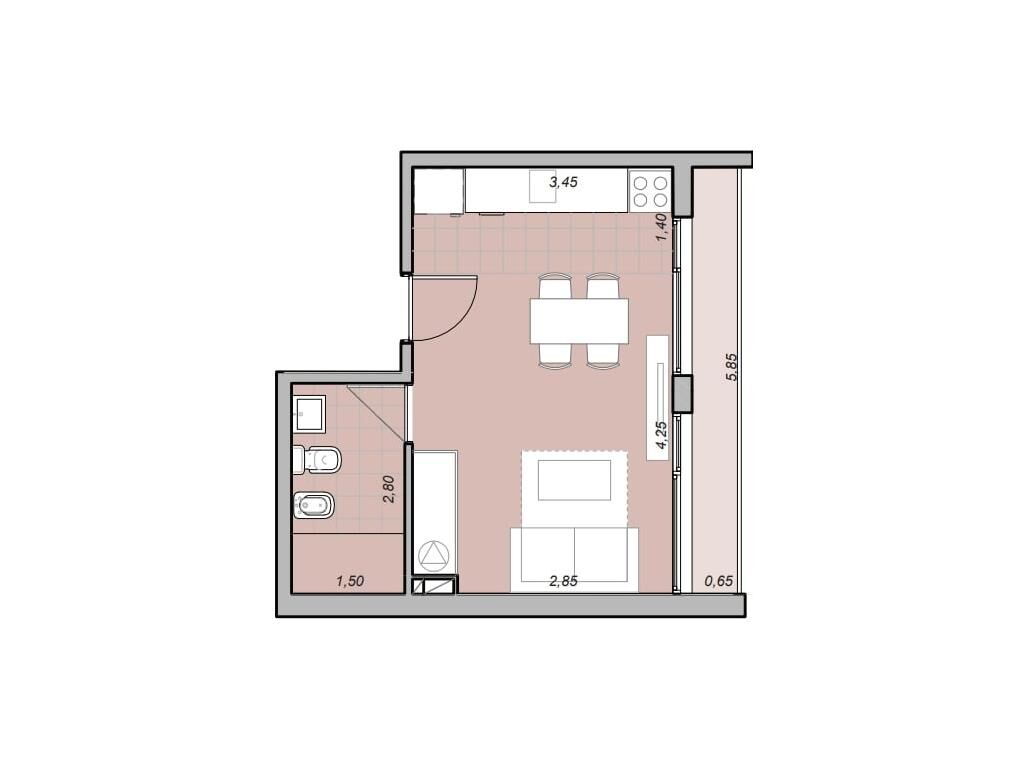 Funcional monoambiente al contrafrente, apaisado, muy luminoso. Buen metraje.