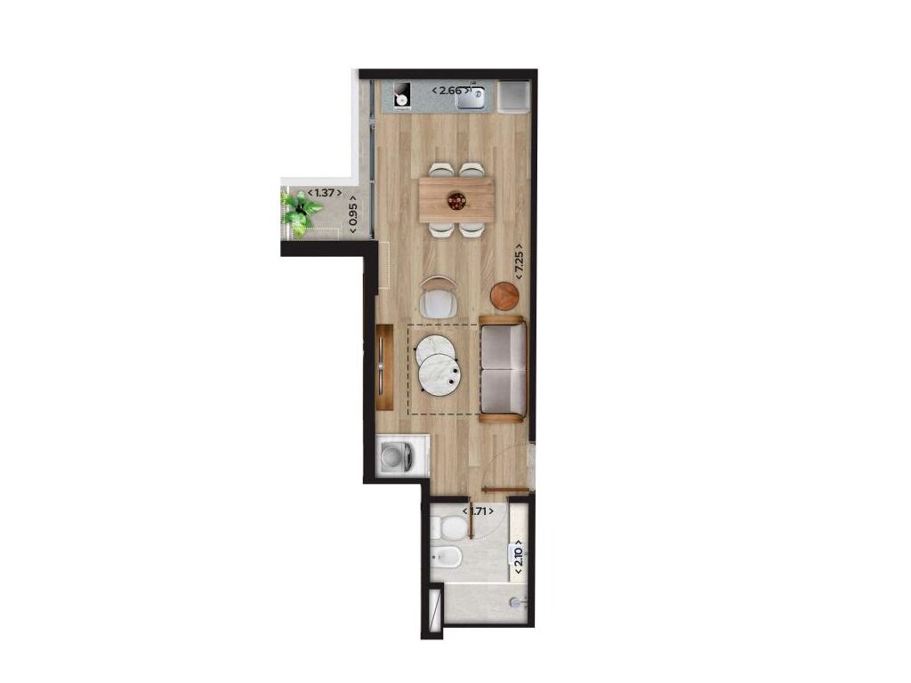 Además contará con: Salón de uso común con parrillero y equipamiento, y terraza solárium al frente. Lavadero, CCTV (Circuito Cerrado de Televisión). Gimnasio equipado, playroom y terraza lounge al fondo.