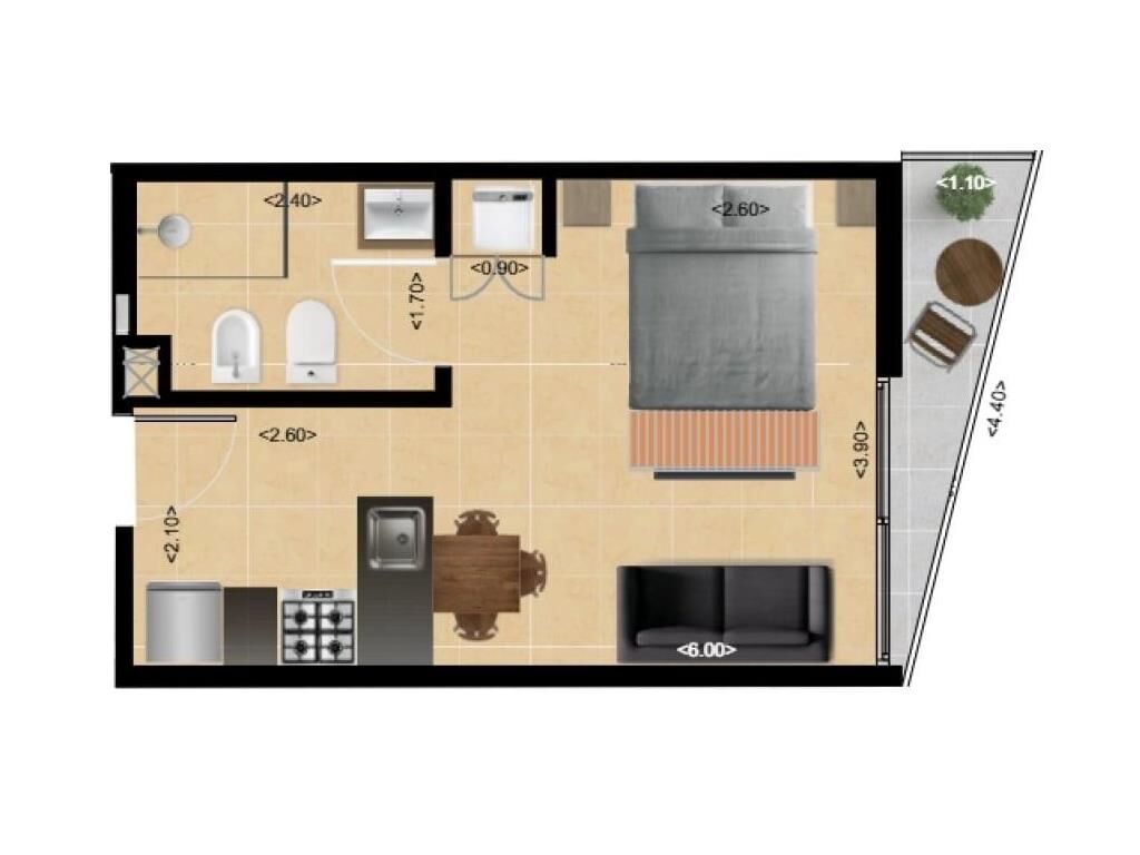 Monoambiente funcional al frente con orientación norte, en el cuarto piso con balcón.