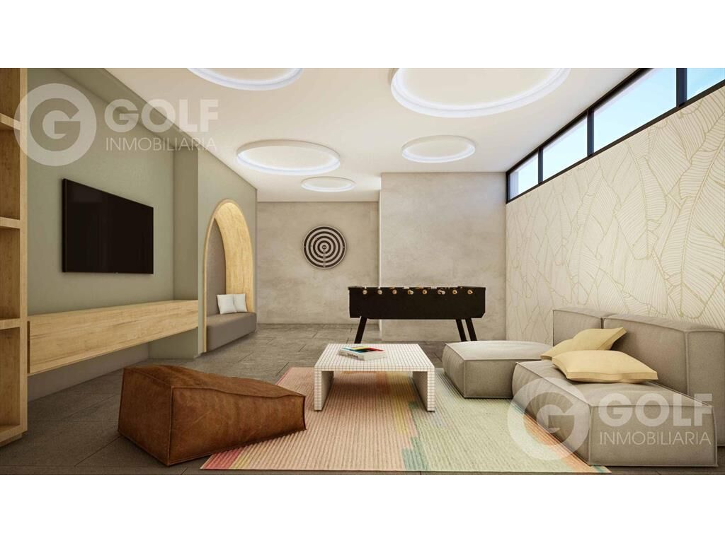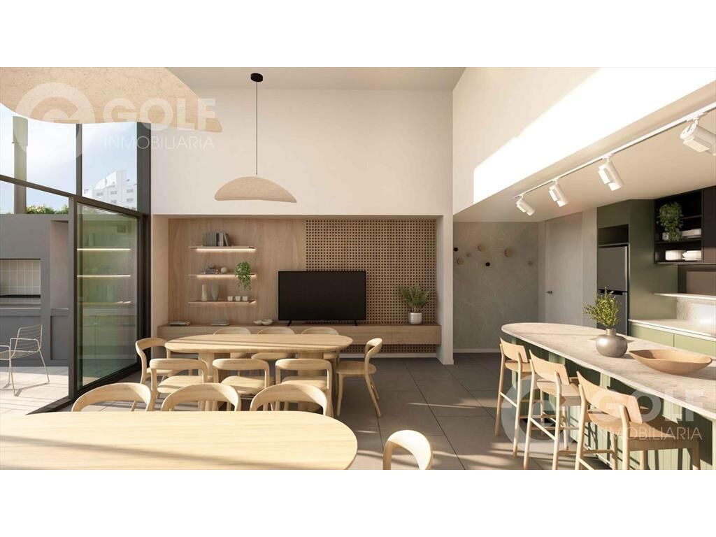 El amplio y funcional living comedor se destaca por su diseño de alta calidad y eficiencia espacial, puerta de acceso con cerradura electrónica, pavimento vinílico símil madera resistente, aberturas de aluminio con cortinas integradas, y aire acondicionado split frío-calor.