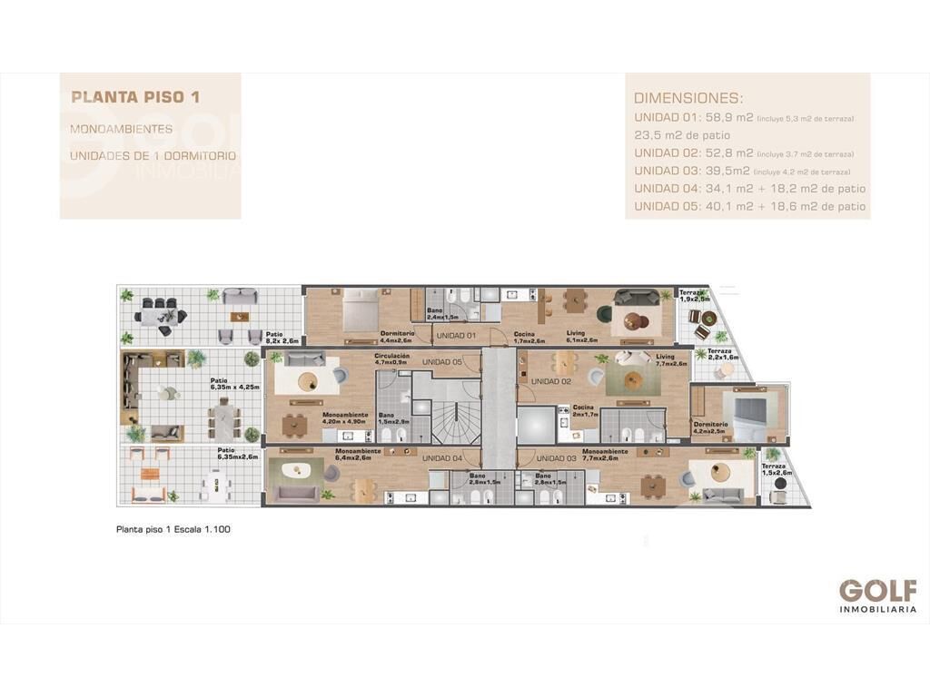 El monoambiente cuenta con: