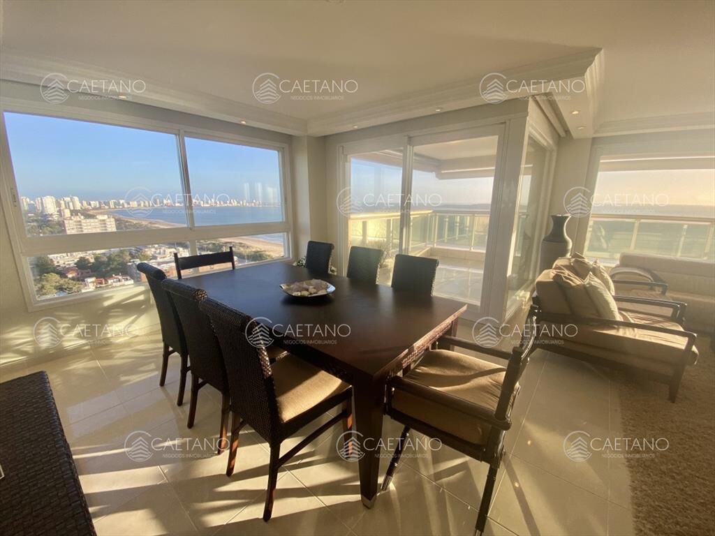 El apartamento consta de living comedor con grandes ventanales con vista a la playa mansa y a la Península, cómoda terraza vidriada al frente.