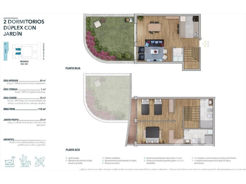 Venta apartamento dúplex de 2 dormitorios con Jardín