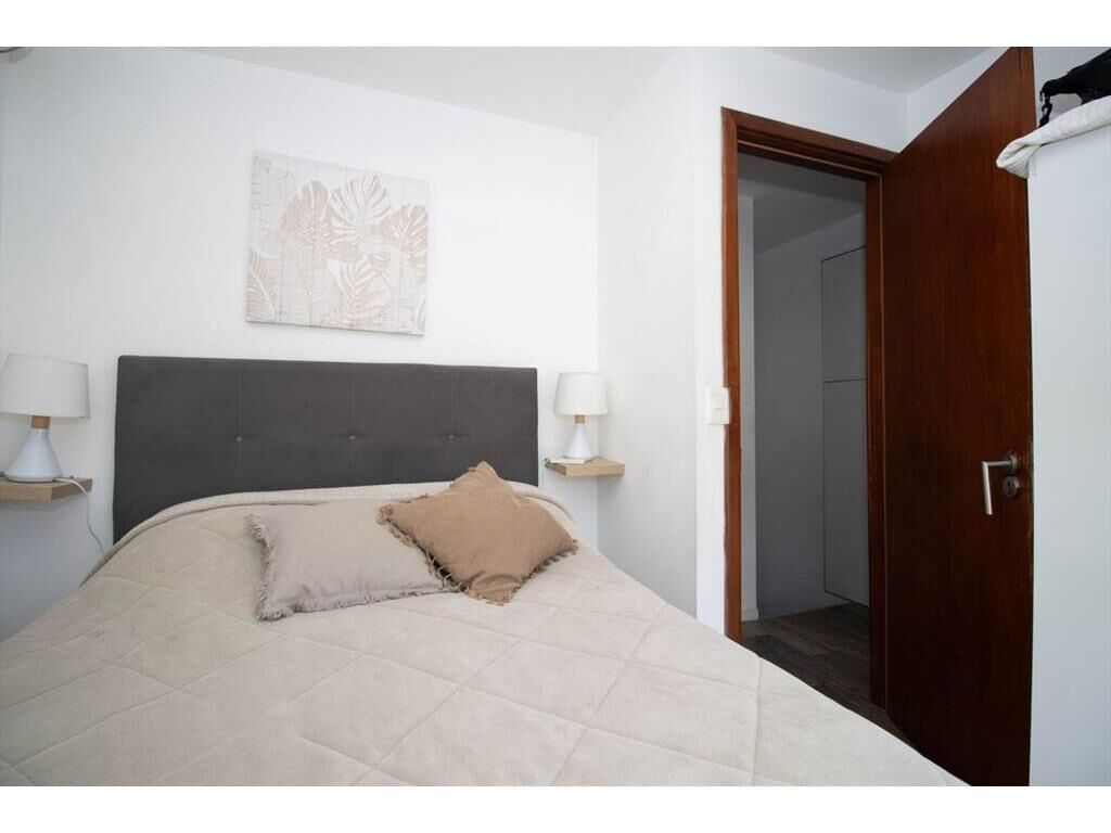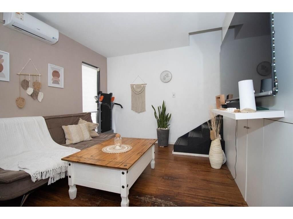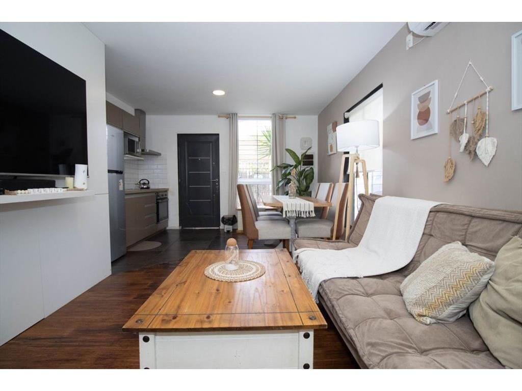 En planta baja cuenta con living con cocina integrada, semi equipada y con aire acondicionado. En planta alta dispone de dos dormitorios luminosos y un baño completo.