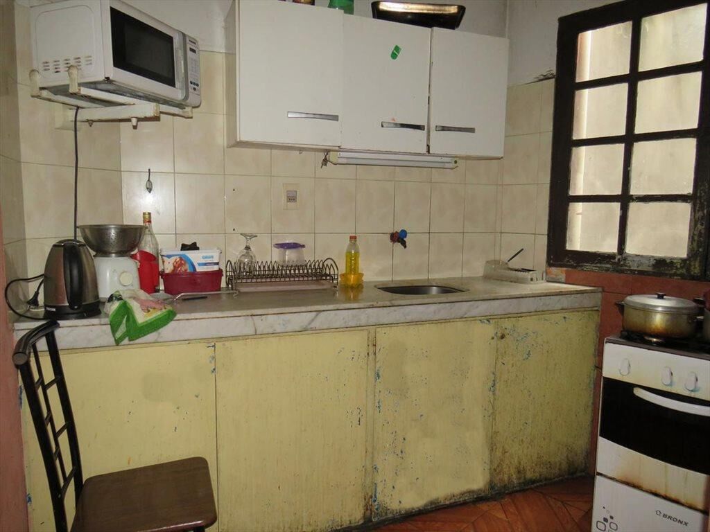 Cocina con placares aéreos y bajo mesada con salida a patio chico.