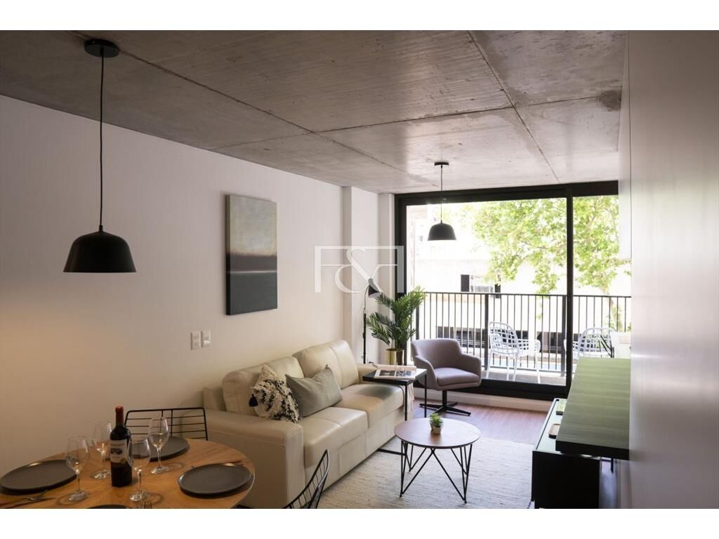 Distribución: Living-comedor con salida a balcón al frente, cocina semi-integrada con placares, dos dormitorios cómodos y baño completo