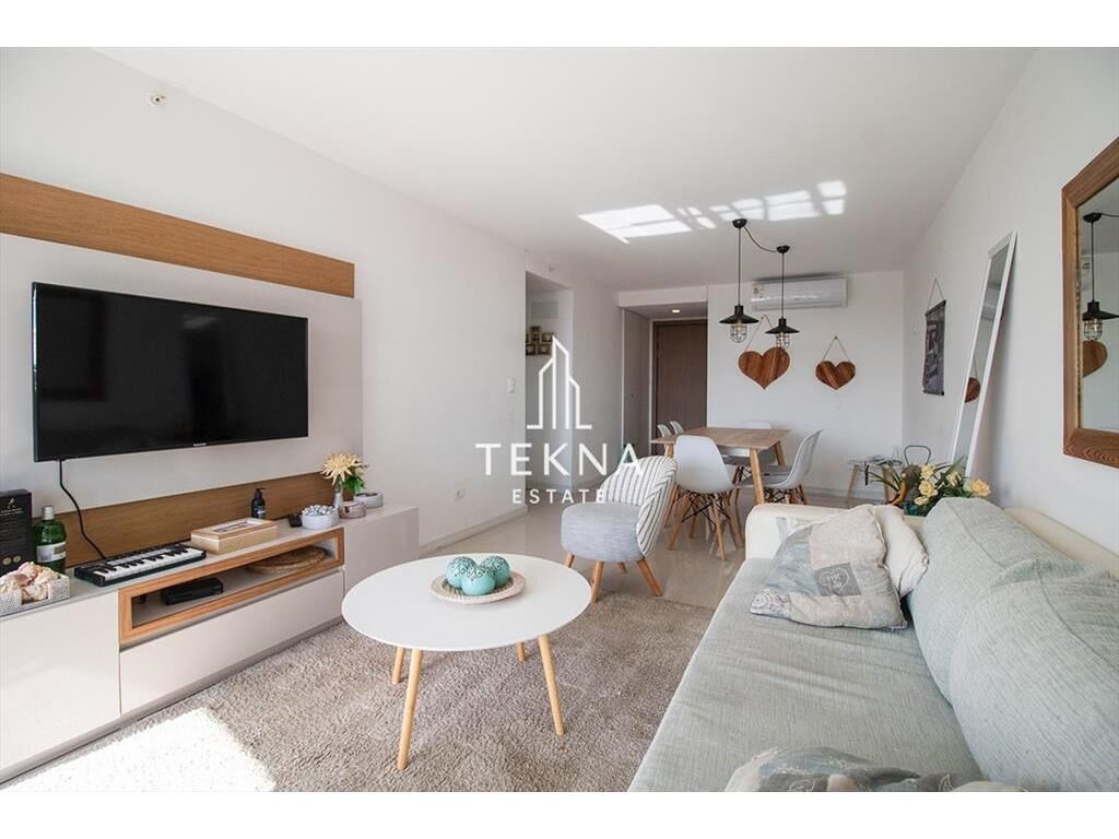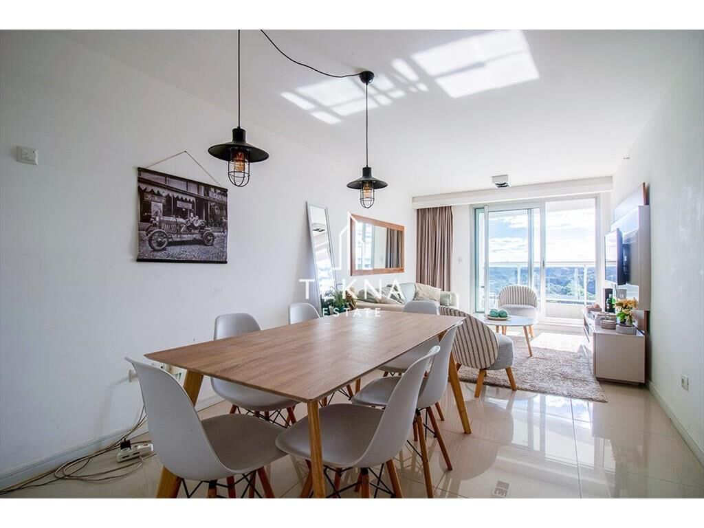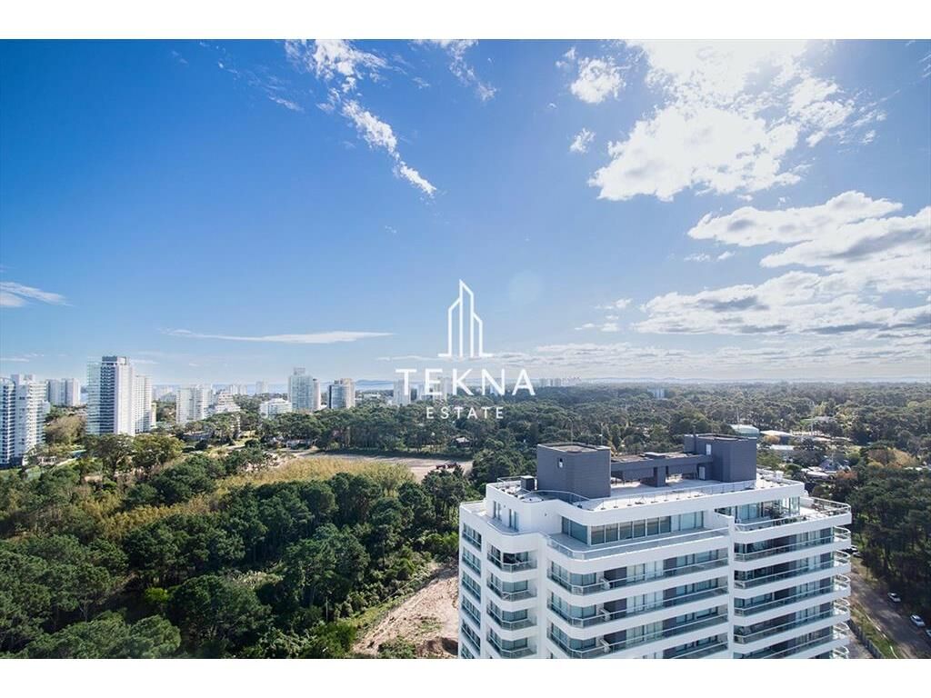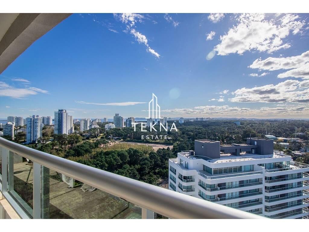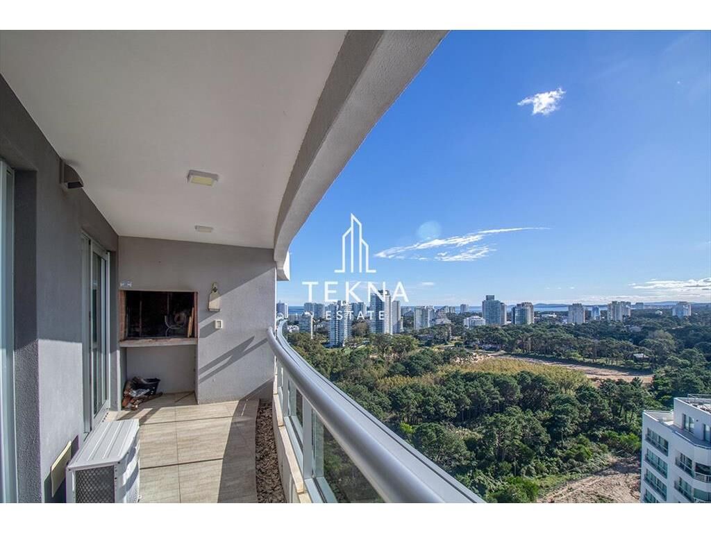 La planta cuenta con un gran metraje para ser de un dormitorio. Tiene dos baños, el principal con bañera y uno social ni bien ingresar. Cuenta con cocina definida, super amplia y también un balcón que conecta todos los ambientes del apartamento, living-comedor, cocina y dormitorio. Además cuenta con parrillero propio, es un espectáculo prender el fuego viendo el atardecer con esta vista.
