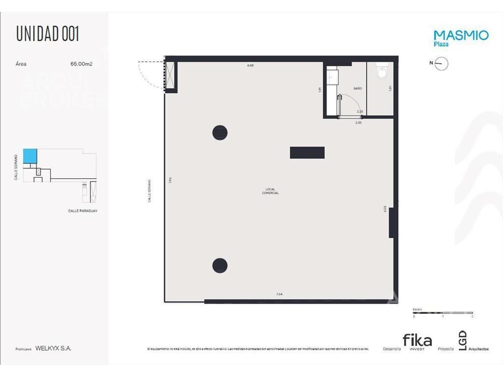 Edificio en construcción a estrenar en diciembre de 2025. Local comercial en venta en Centro. Planta baja al frente con orientación norte. Torre Soriano. Amplio local comercial con 8 metros de frente sobre calle Soriano. 1 baño completo. Previsión para AA. Forma de pago: Reserva 10% Compromiso 30% Cuotas mensuales 40% Saldo a la posesión 20% Gastos de ocupación 2% Cuenta con los beneficios de la Ley de vivienda Promovida. u 001 Ref. LC Masmío Plaza Referencia ABU48609 AP4926420 Honorarios por intermediación: 3% + IVA para operaciones de compra. Un mes de alquiler + IVA para operaciones de alquiler. La información contenida en el presente documento ha sido proporcionada íntegramente por el/los propietarios del inmueble. Arquibrokers Servicios Inmobiliarios no se responsabiliza por las diferencias ni las modificaciones que puedan surgir a partir de este documento.