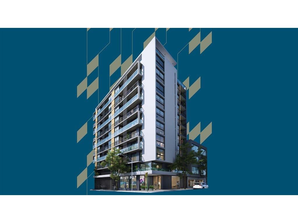 Edificio 4.151 m² construidos. 57 unidades + 1 local comercial. 30 garajes. Un piso de amenities. Proyecto con tecnologías renovables.