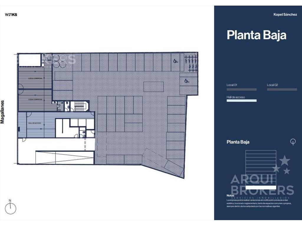 Edificio en construcción a estrenar en setiembre de 2026. Local comercial en venta en Palermo. Planta baja al frente con orientación oeste. Local comercial con kitchenette y 1 baño. Forma de pago Banco: Forma de pago inversor en obra: 5% reserva 10% reserva 10% compromiso 20% compromiso 35% cuotas en obra 60% cuotas en obra 50% ocupación 10% ocupación Gastos de ocupación 4% Cuenta con los beneficios de la Ley de vivienda de interés social. u001 Ref. AB Winks Magallanes Referencia: ABU48323 AP5018144 Honorarios por intermediación: 3% + IVA para operaciones de compra. Un mes de alquiler + IVA para operaciones de alquiler. La información contenida en el presente documento ha sido proporcionada íntegramente por el/los propietarios del inmueble. Arquibrokers Servicios Inmobiliarios no se responsabiliza por las diferencias ni las modificaciones que puedan surgir a partir de este documento.