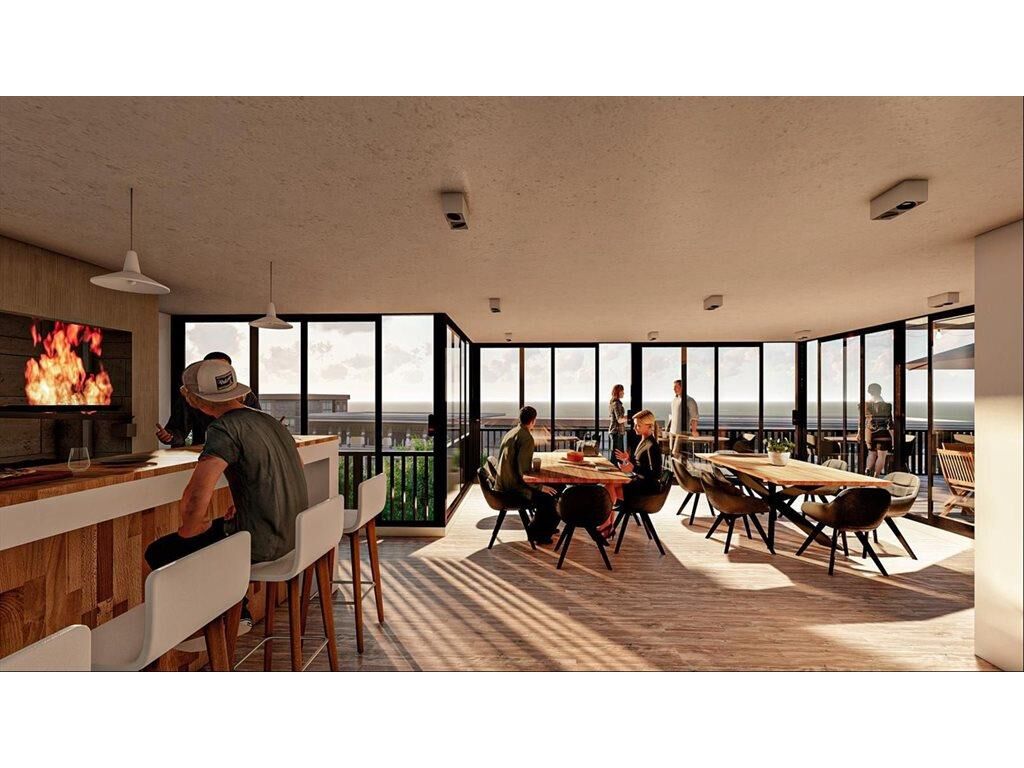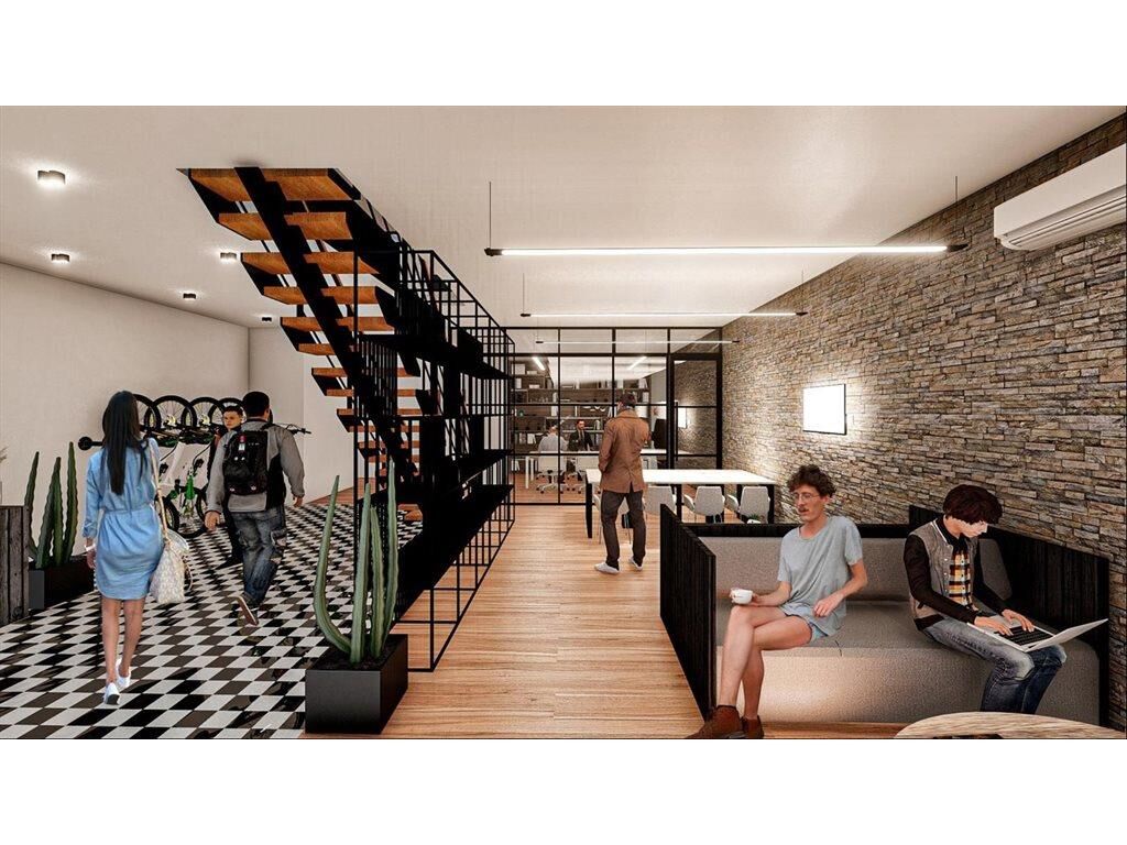 En planta baja se ubican la cafetería, el espacio co work, SSHH y el loundry.
