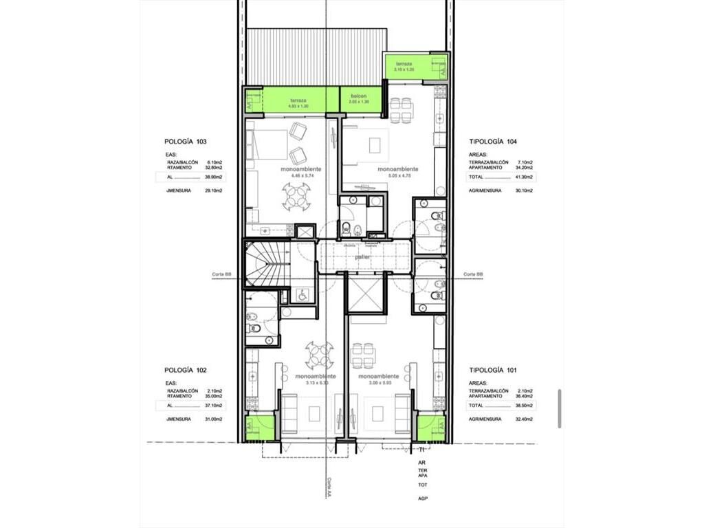 Unidad 104// El departamento monoambiente se encuentra ubicado sobre la calle Canelones. Situado en el piso 1 de un edificio de 10 pisos, cuenta con una superficie total construida de 38,5 m², de los cuales 36,4 m² son cubiertos y 2,1 m² de terraza.