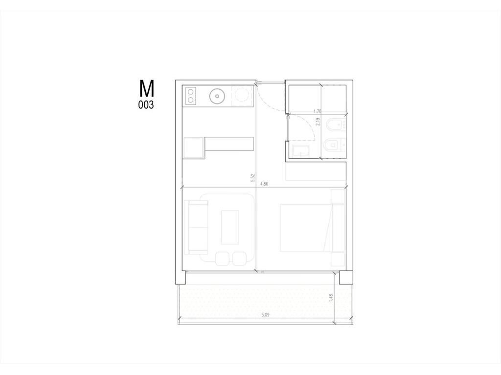 Unidad Monoambiente con salida a terraza. Cocina integrada con bajo mesadas incluidas.