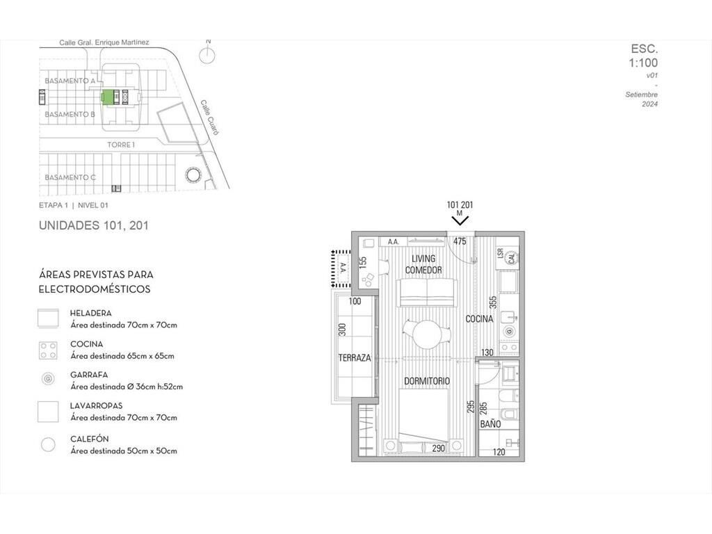 Apartamento unidad 101 en el primer piso con oeste y disposición interna .