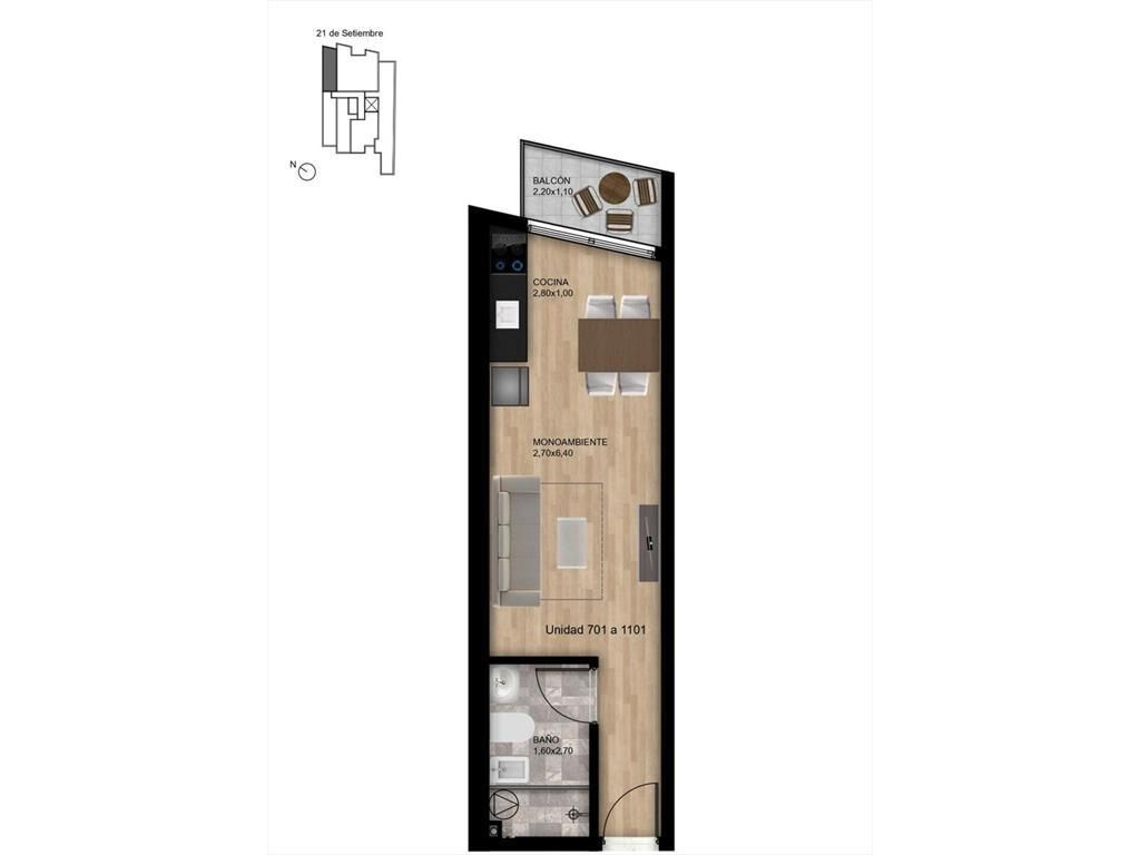 Se vende mono ambiente en edificio finalizando ya su construcción , en excelente zona de Punta Carretas.