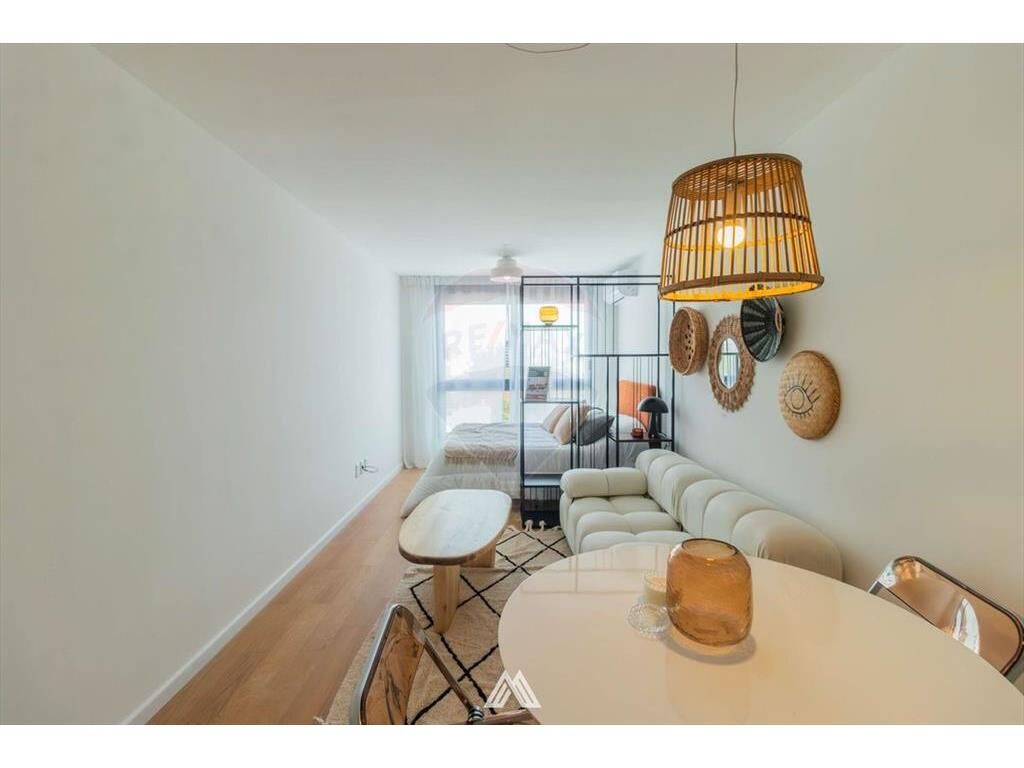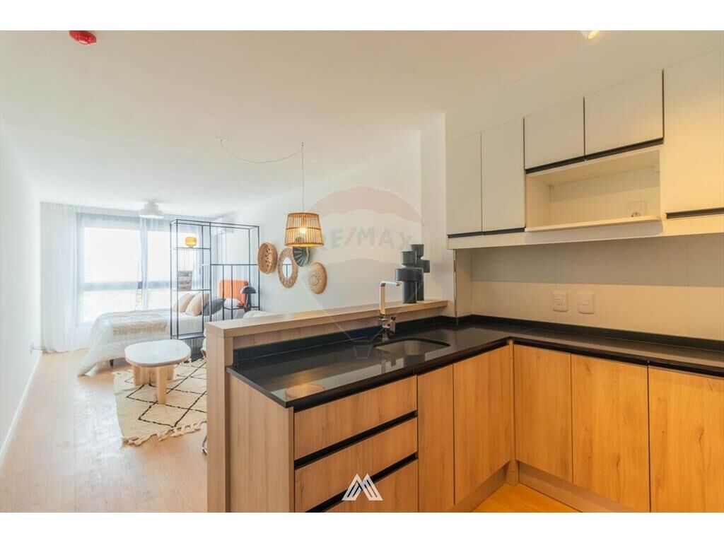 Es un monoambiente que cuenta con cocina integrada , baño completo y living comedor con un ventanal de generosas dimensiones,que le brinda luz y calidez al ambiente.