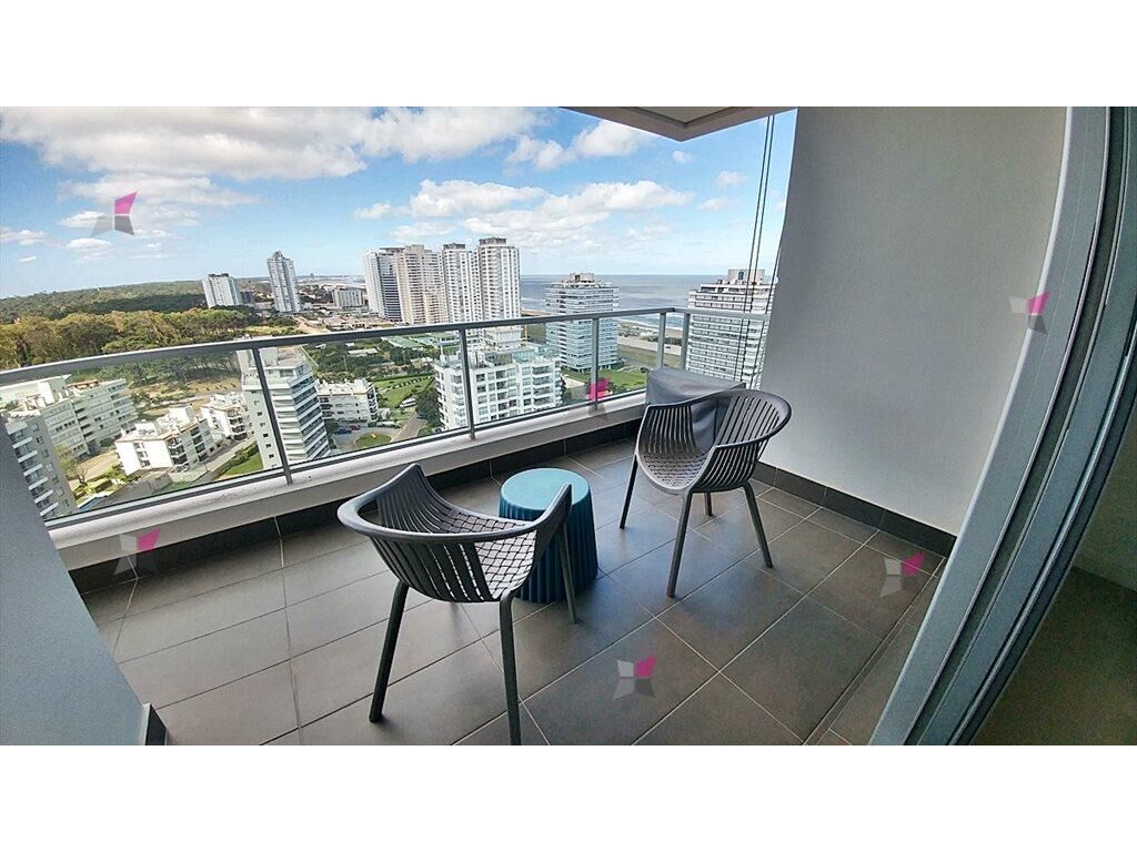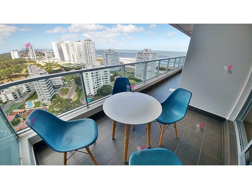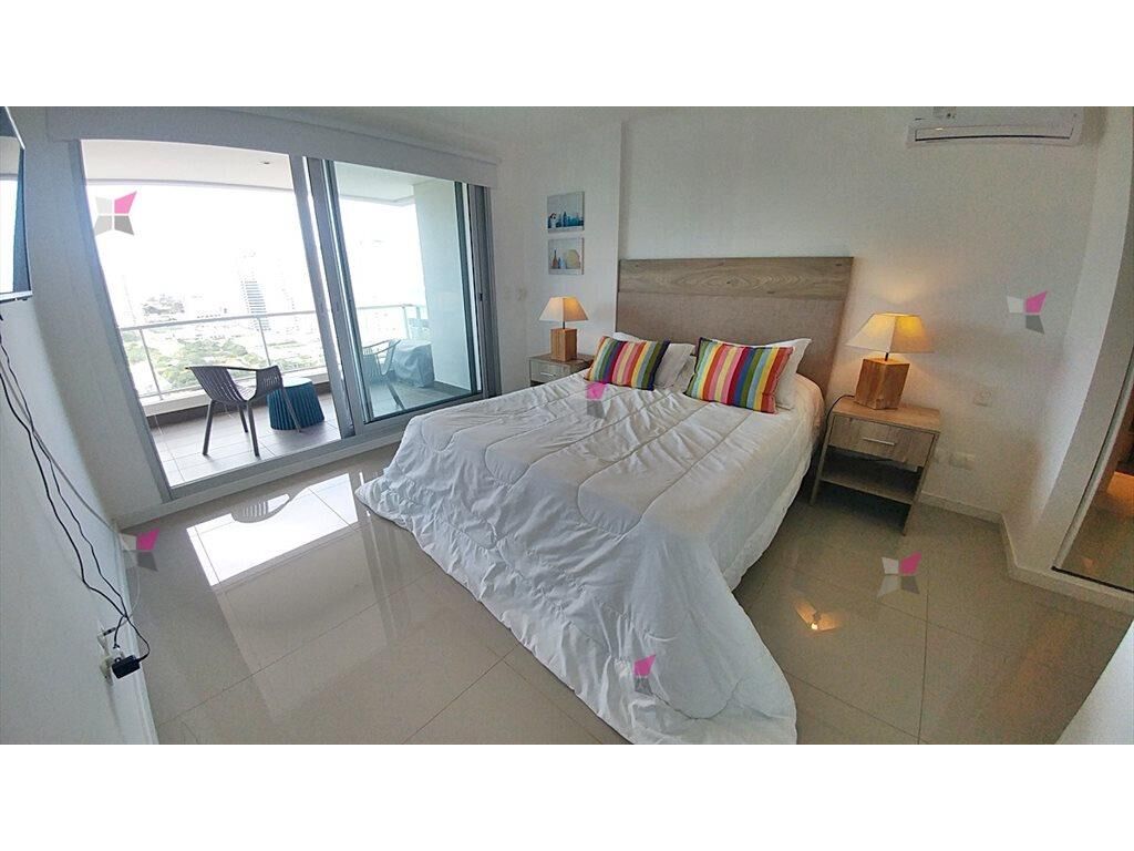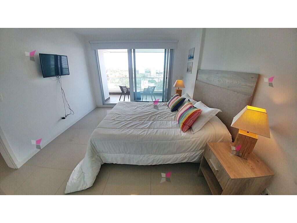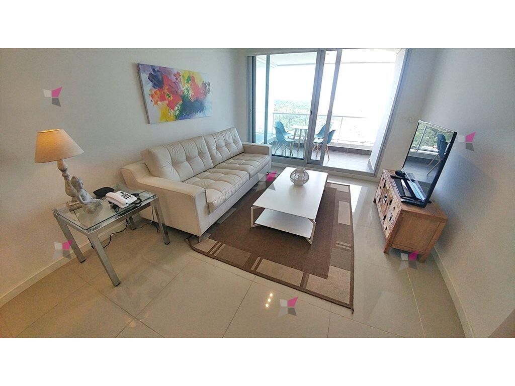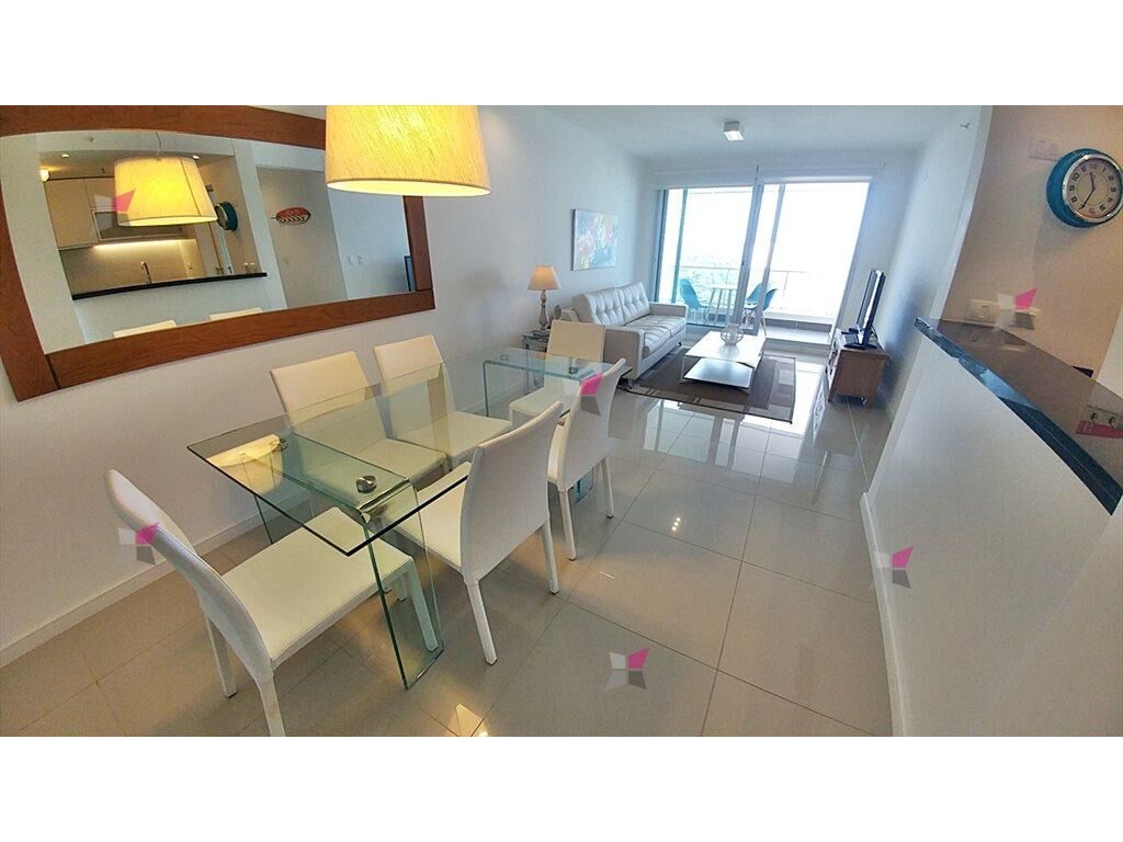Edificio con excelente servicios , apartamento en piso alto con vista a Playa Brava.